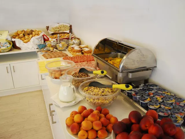 V hoteli je k dispozícii polpenzia s výberom zo 3 prvých a 3 druhých chodov. K dispozícii sú aj dezerty, ovocie, zmrzlina a zeleninový bufet. Možno si doplatiť obedy.