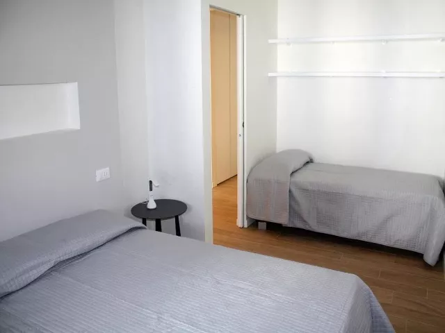 veľká rezidencia so 7 podlažiami a 4 vchodmi v blízkosti bezplatnej pláže, v prízemí s množstvom obchodov, barov a požičovní bicyklov