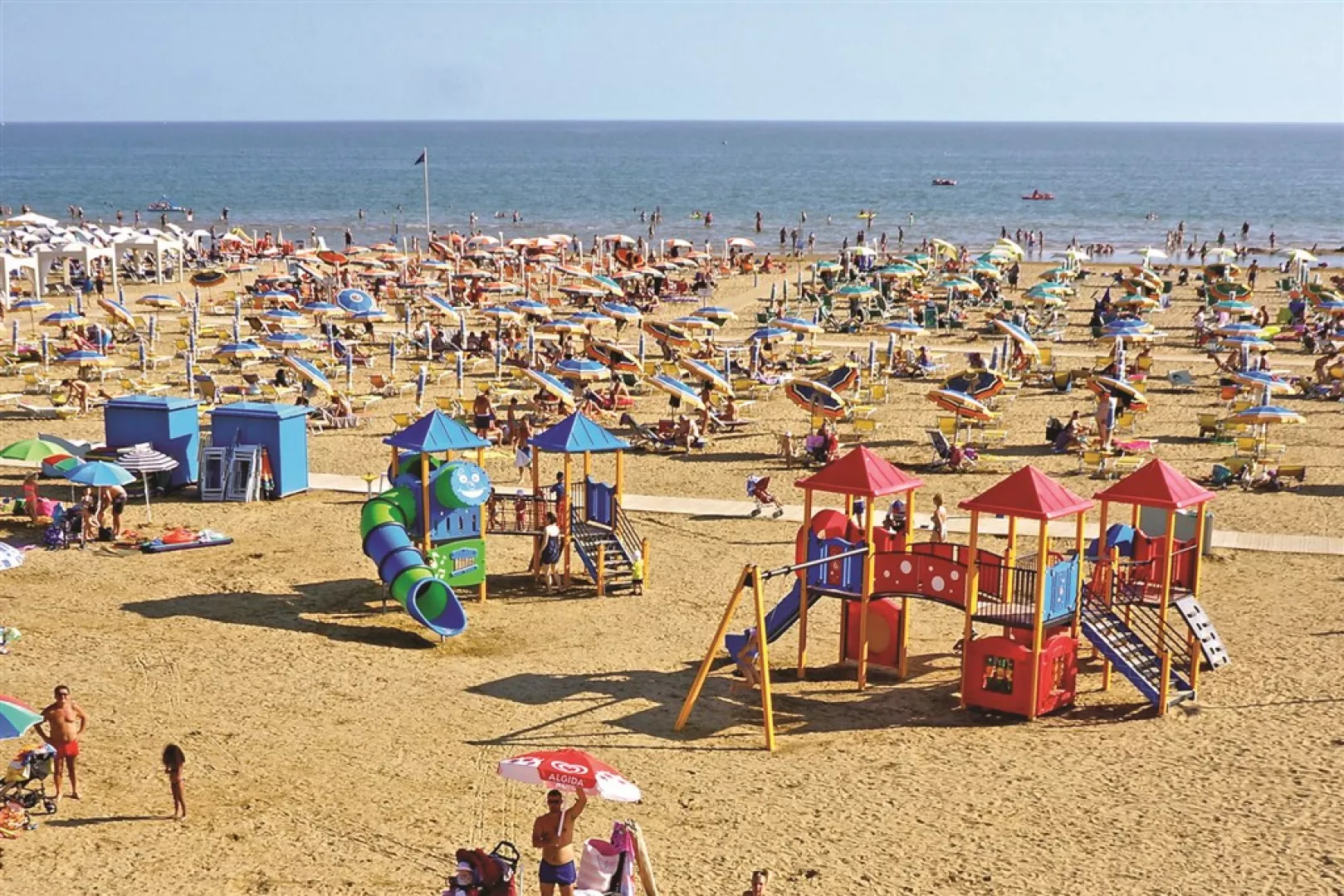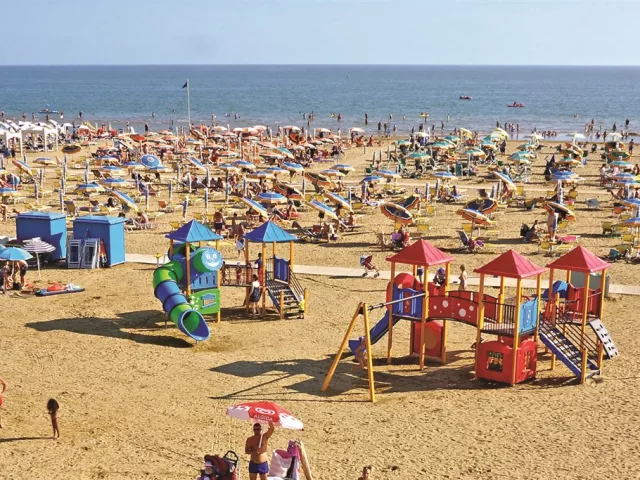 Rezidencia Monaco sa nachádza priamo v centre časti Bibione Spiaggia, na námestí Piazza Fontana, v tesnej blízkosti obchodov, barov a reštaurácií. Vzdialenosť od piesočnatej pláže je približne 100 metrov s pozvoľným vstupom do mora, čo je ideálne pre rodiny s deťmi. Plážový servis je dostupný za poplatok.