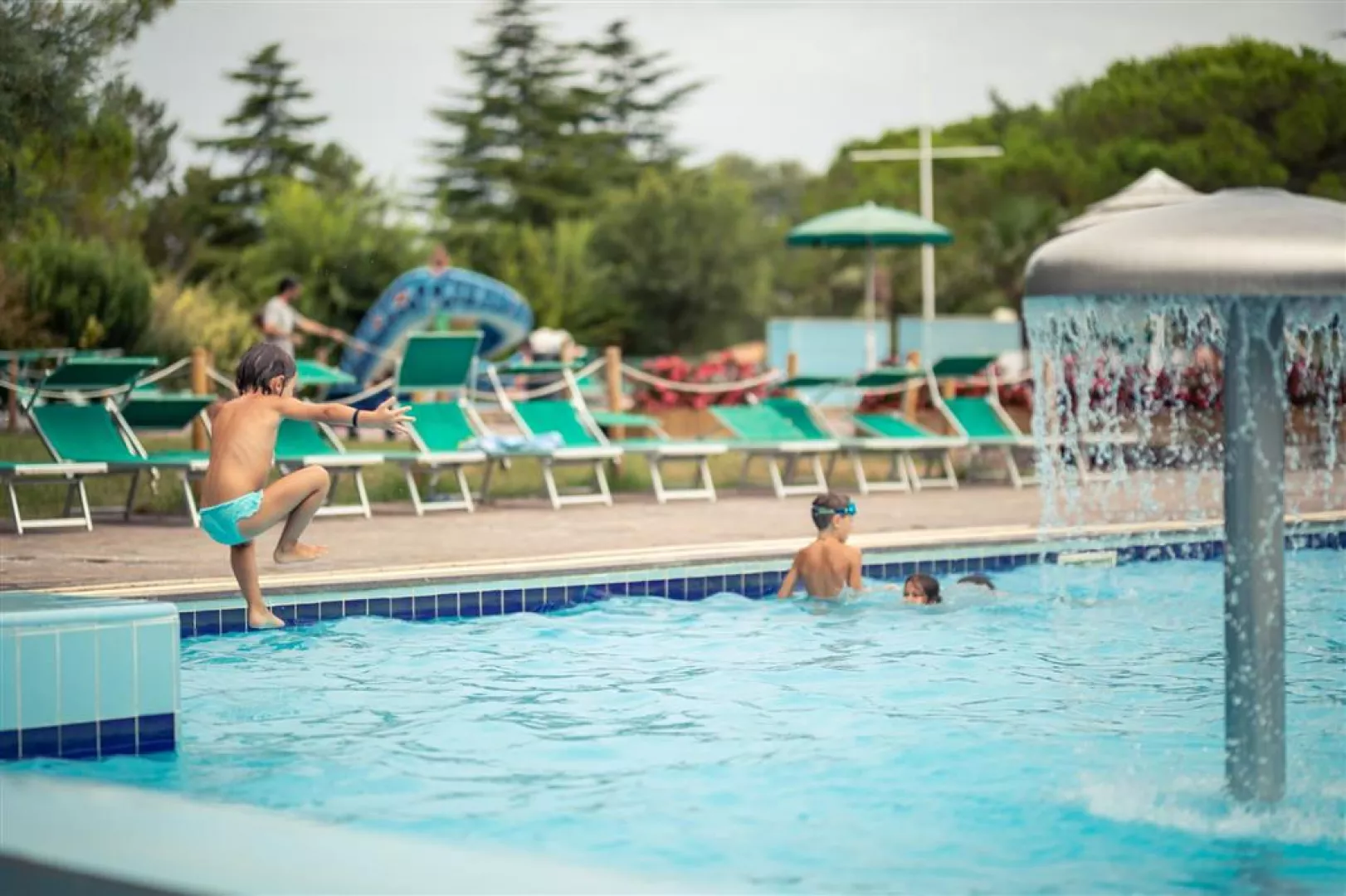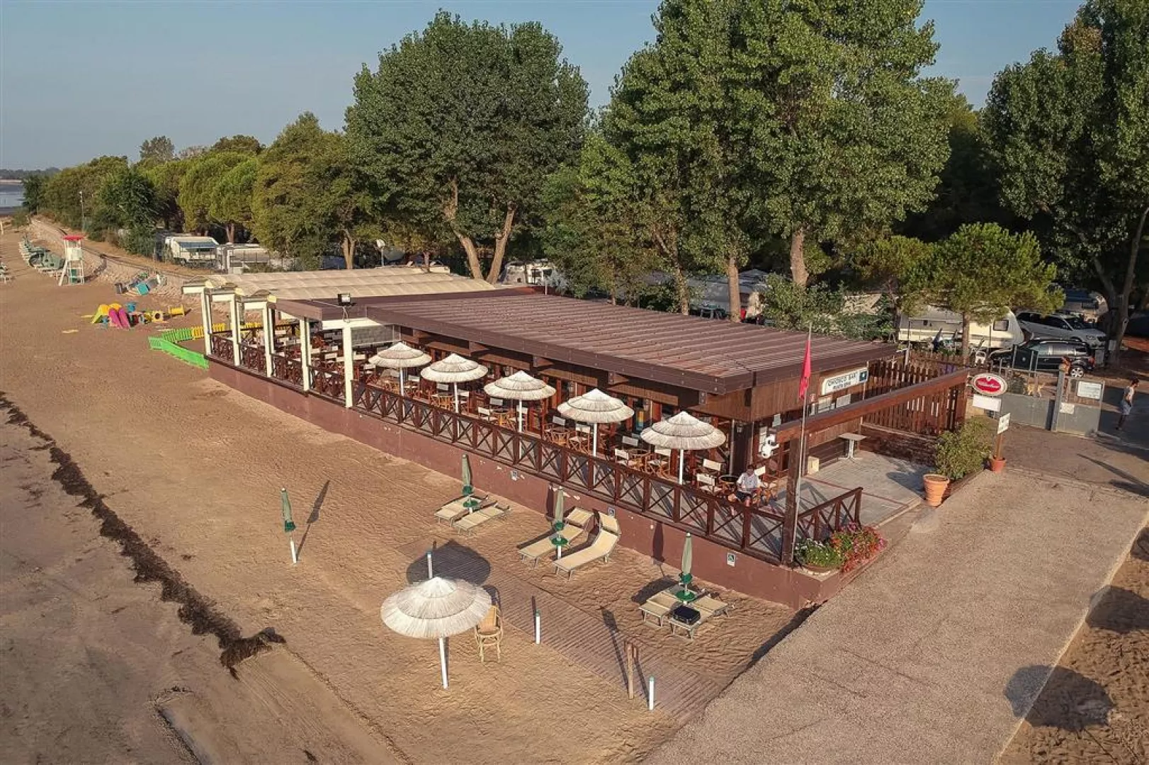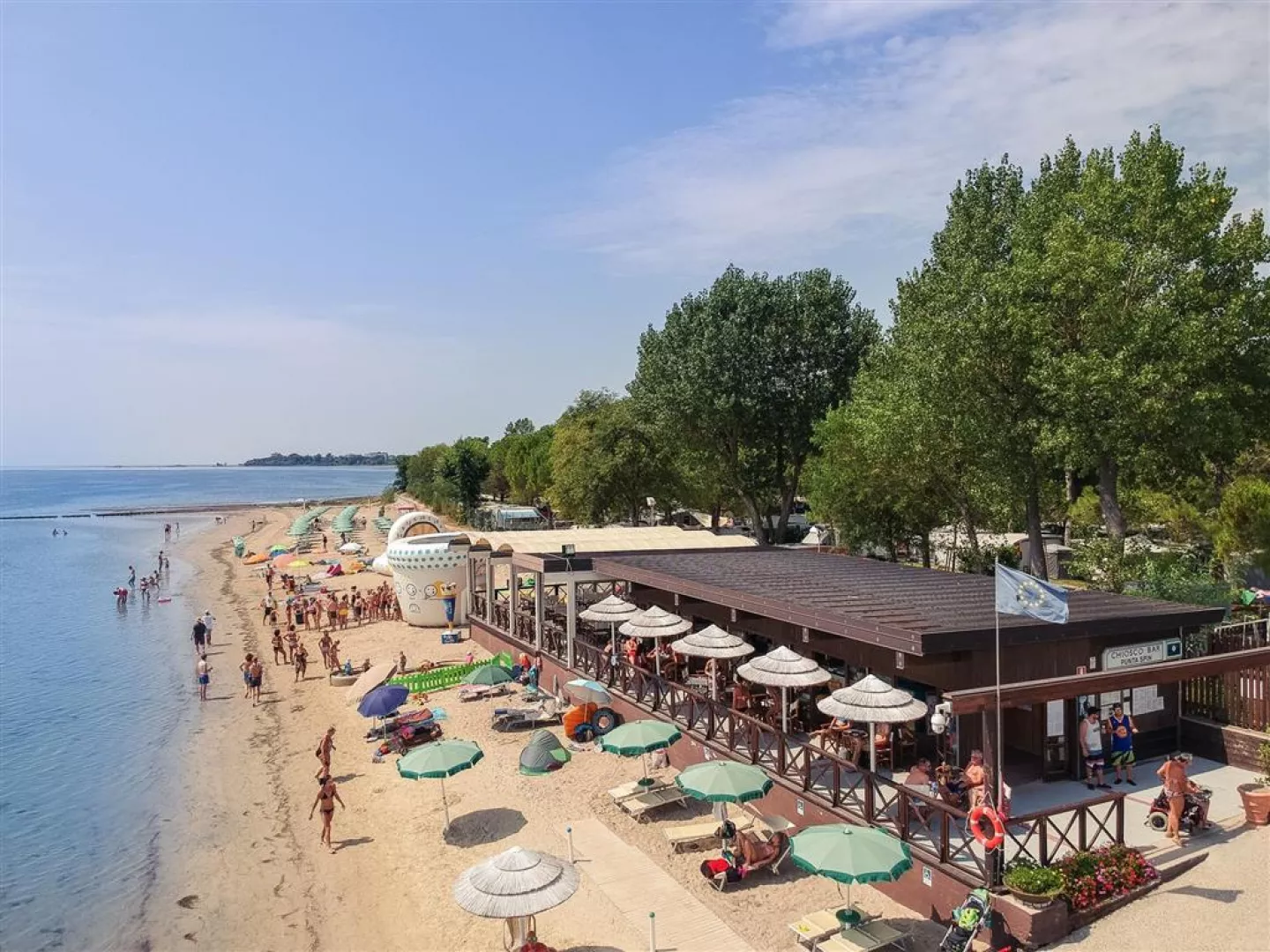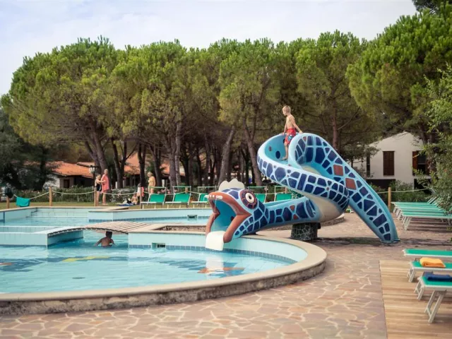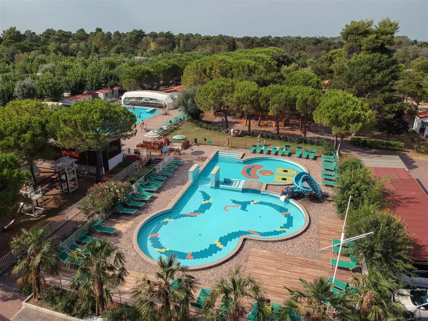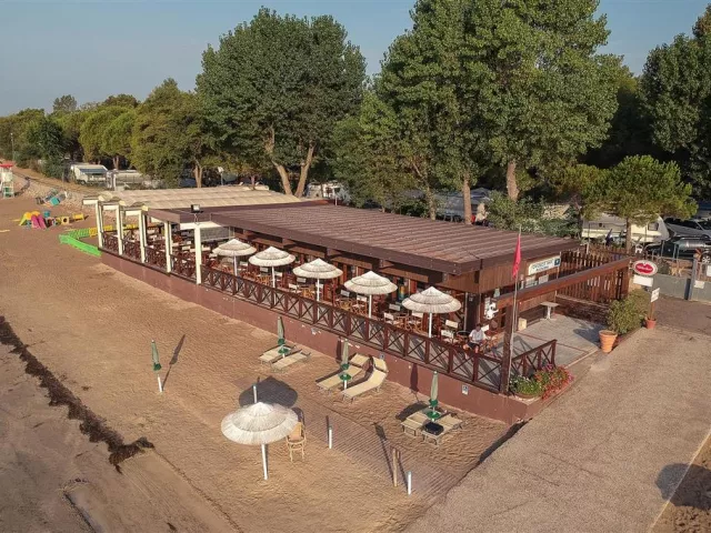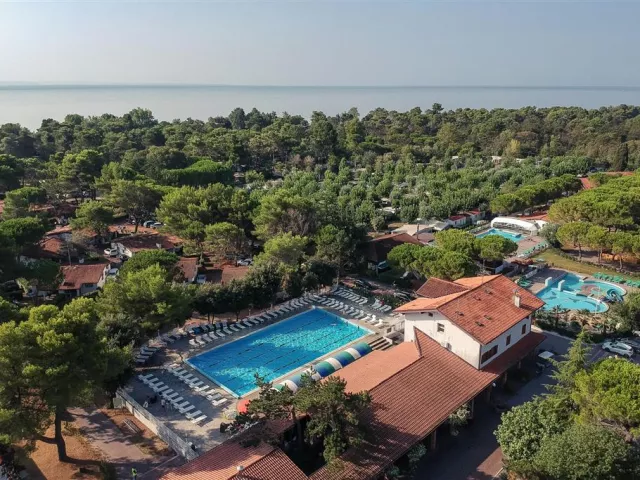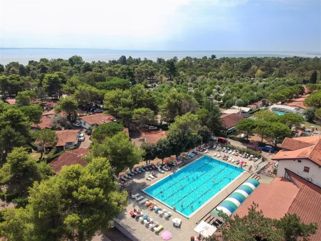 Ubytovanie:V komplexe sa nachádzajú recepcia s WiFi, 3 bazény - z toho jeden s toboganom, jeden zastrešený, fitnescentrum, wellness (sauna, hammam za poplatok), tenisové kurty (za poplatok), furbalové a basketbalové ihrisko, požičovňa bicyklov (za poplatok), obchod, bar pri bazéne aj na pláži, reštaurácia a pizzeria, parkovisko.V hlavnej sezóne sú aj animácie vo svetových jazykoch. Ubytovanie je v rôznych typoch bungalovov a karavanov.