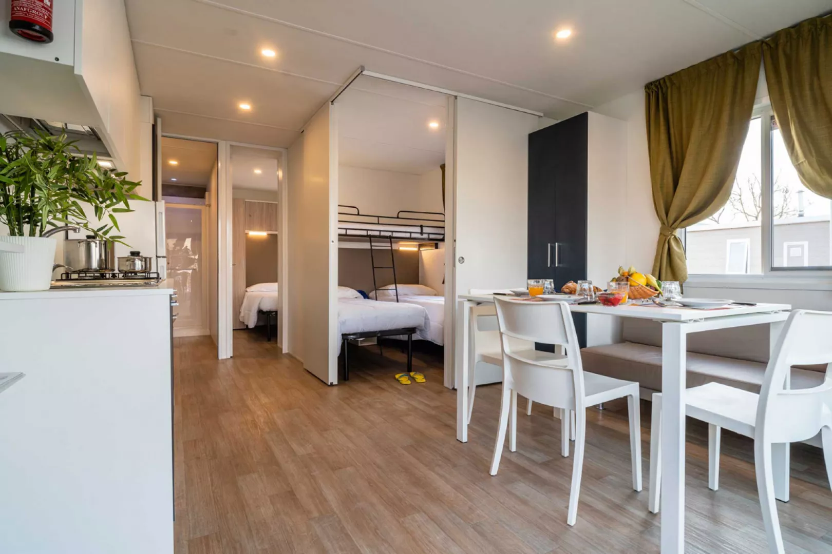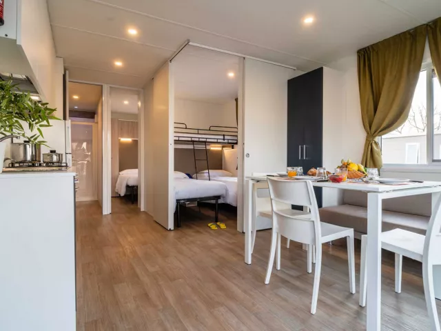 detská postieľka: 3 € / deň (iba na požiadanie v CK; max. 1; nemožno nad rámec plnej obsaditeľnosti mobilhomu; pre dieťa do nedovŕšených 2 rokov) dieťa do nedovŕšených 2 rokov (infant) je potrebné vždy započítať do obsaditeľnosti mobilhomu, platí sa za všetky osoby bez rozdielu veku; nemožno ubytovať žiadnu osobu nad rámec plnej obsaditeľnosti mobilhomu (0–99 rokov) pobyt so psom možný len v type označenom dog stravovanie* – možnosť raňajok, polpenzie alebo plnej penzie; nutné objednať pri rezervácii pobytu, vždy pre všetky osoby v apartmáne; platba na mieste (objednávka stravy je záväzná) * služby za príplatok