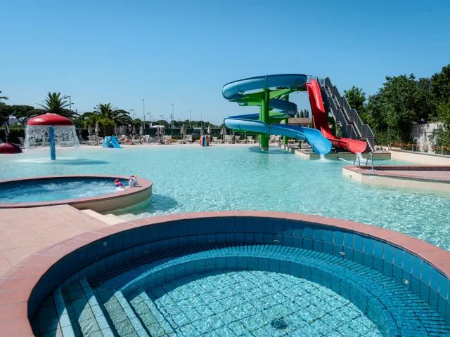 1 bazén s pozvoľným vstupom, detskou časťou a toboganmi, 2 vírivky, plavecký bazén, ležadlá* a slnečníky*, stolný tenis, multifunkčné ihrisko, tenisový kurt, futbalové ihrisko, pickleballové ihrisko, požičovňa bicyklov* * služby za príplatok