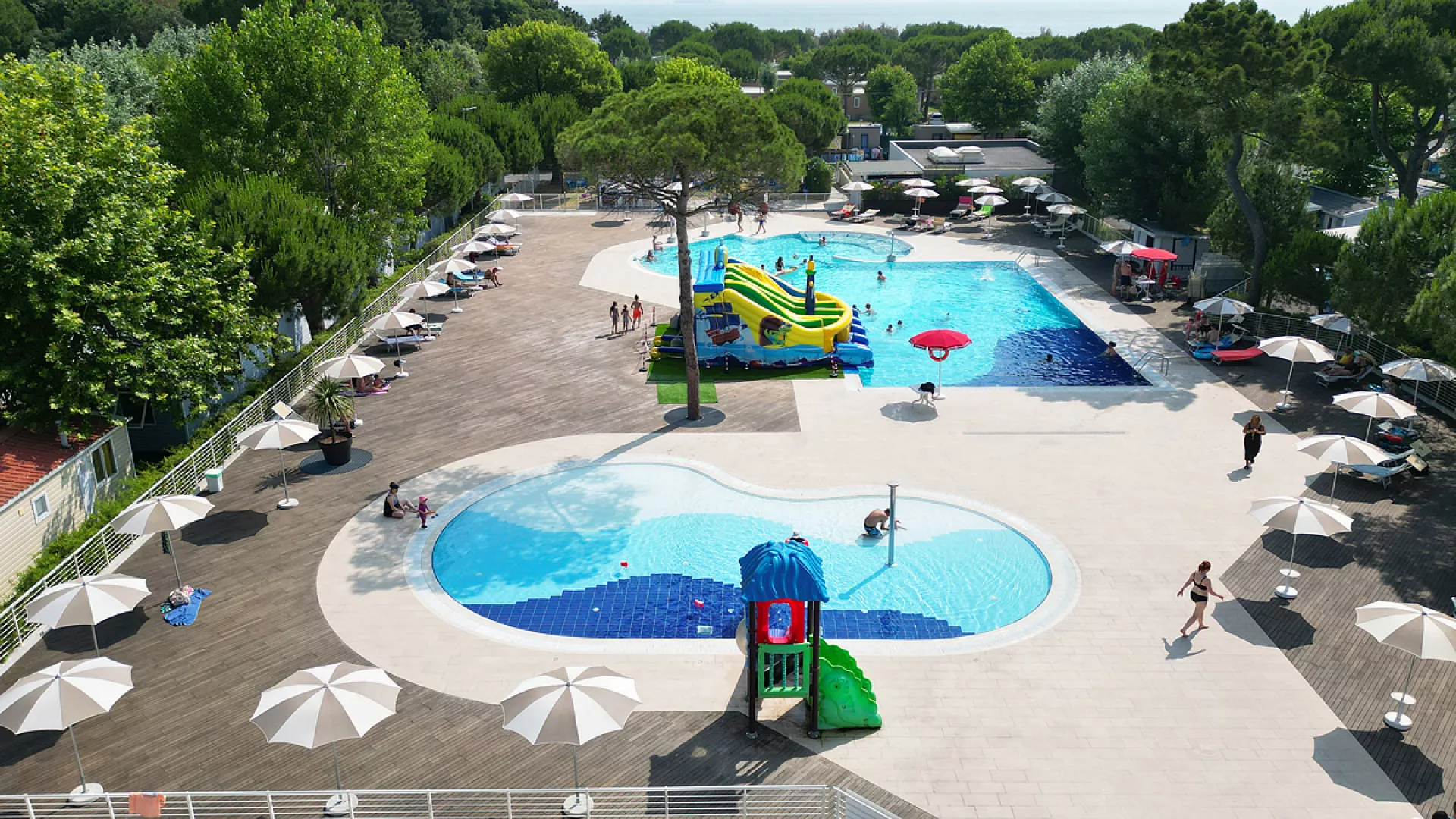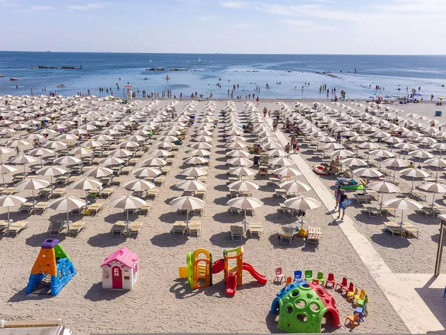 2 bazénové komplexy v susedstve (Marina Resort a Adriano Resort; približne od polovice mája do polovice septembra) so slnečníkmi* a ležadlami*, požičovňa bicyklov*, plážový volejbal, stolný tenis, plážový servis* * služby za príplatok