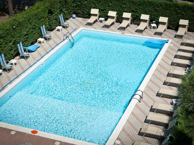 bazén s ležadlami, plážový servis (1 slnečník a 2 ležadlá / izba v cene)