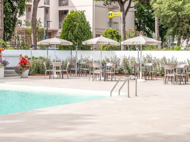 vonkajší bazén so slnečníkmi a ležadlami, plážový servis (1 slnečník a 2 ležadlá / izba v cene), požičovňa bicyklov (podľa dostupnosti; vrátane bicyklov s detskou sedačkou)