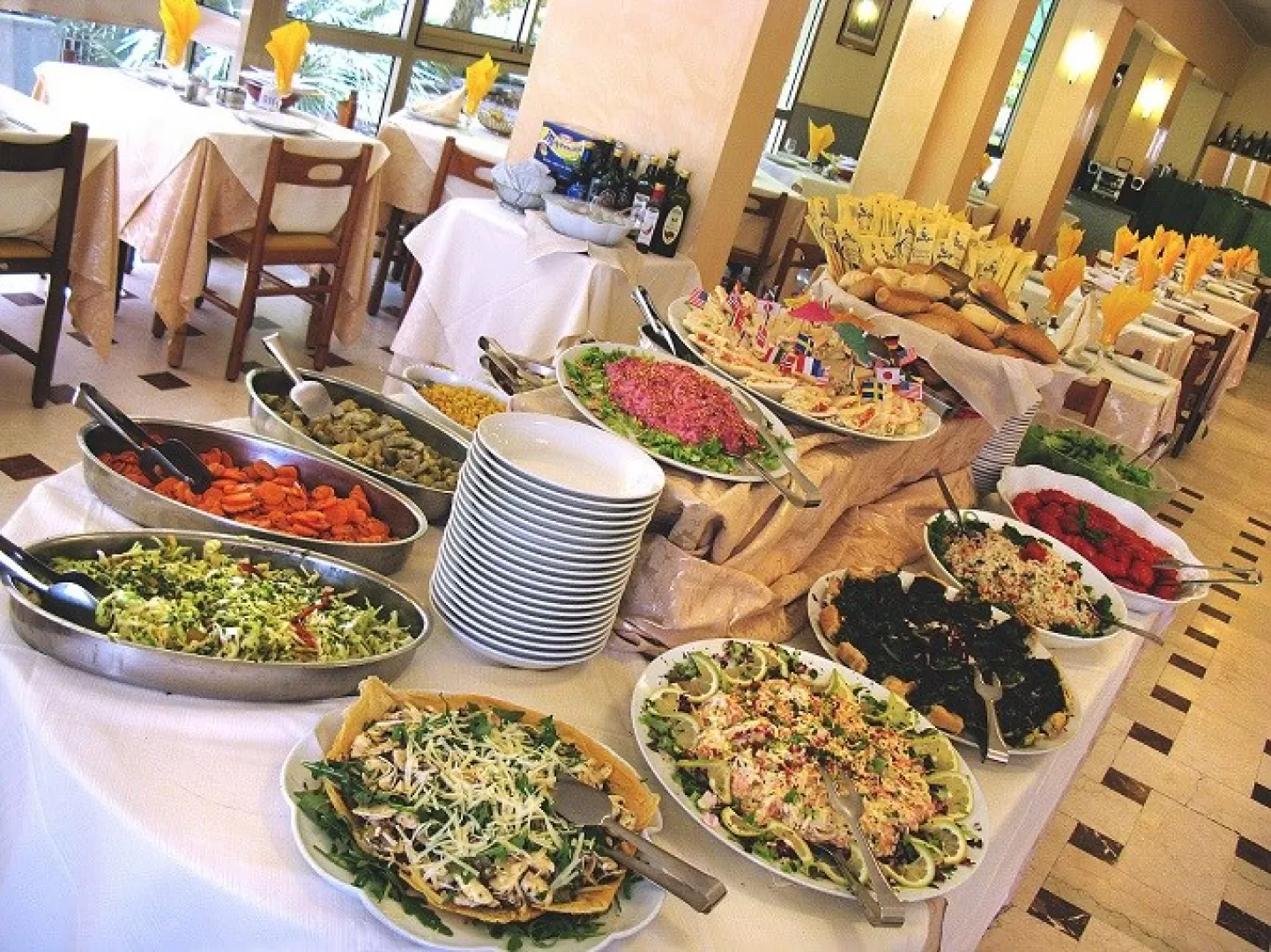 Hotel ponúka plnú penziu, pričom raňajky, obedy a večere sú podávané formou bufetu kuchárom. Počas obeda a večere je k dispozícii voda, červené a biele víno.