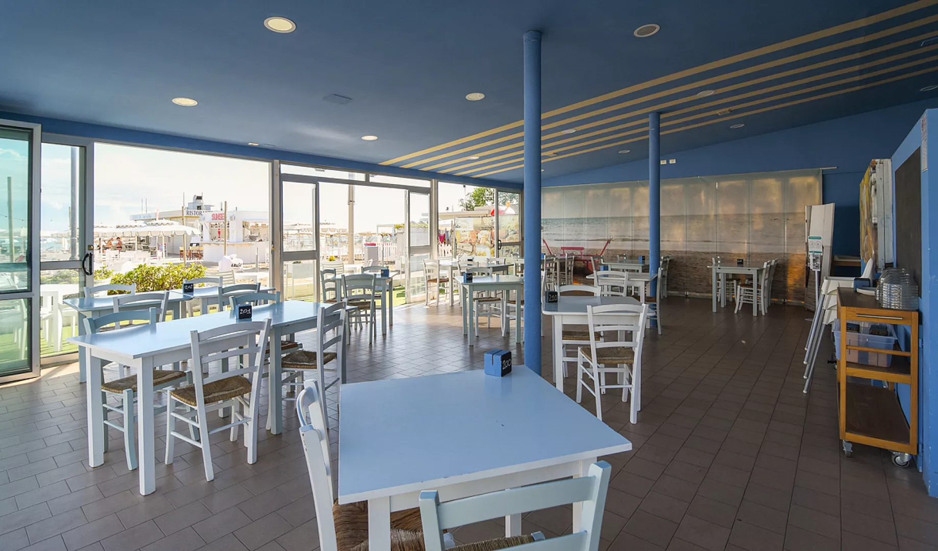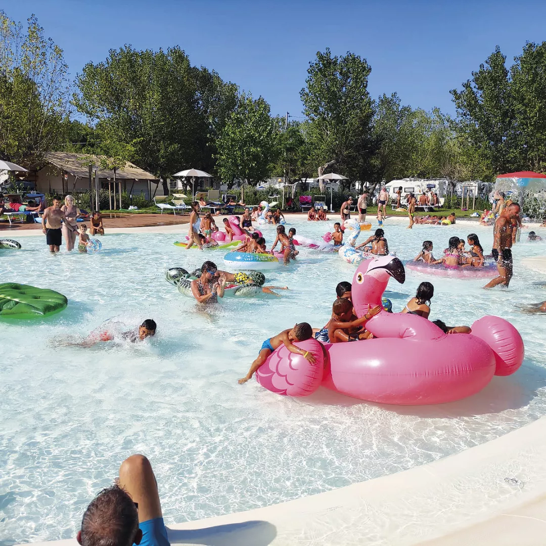 bazén s hydromasážnymi tryskami, detský bazén so šmýkľavkami, slnečníky* a ležadlá* (všetko približne od konca mája do polovice septembra), požičovňa bicyklov*, priestor na údržbu a umytie bicyklov, zmluvná pláž*: plážový volejbal, plážový tenis, stolný tenis * služby za príplatok