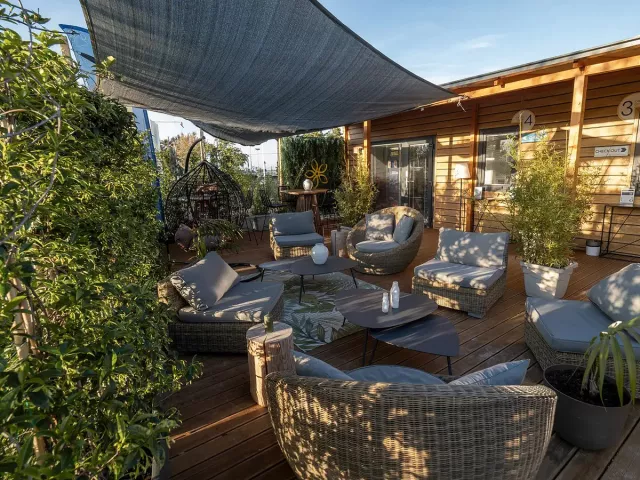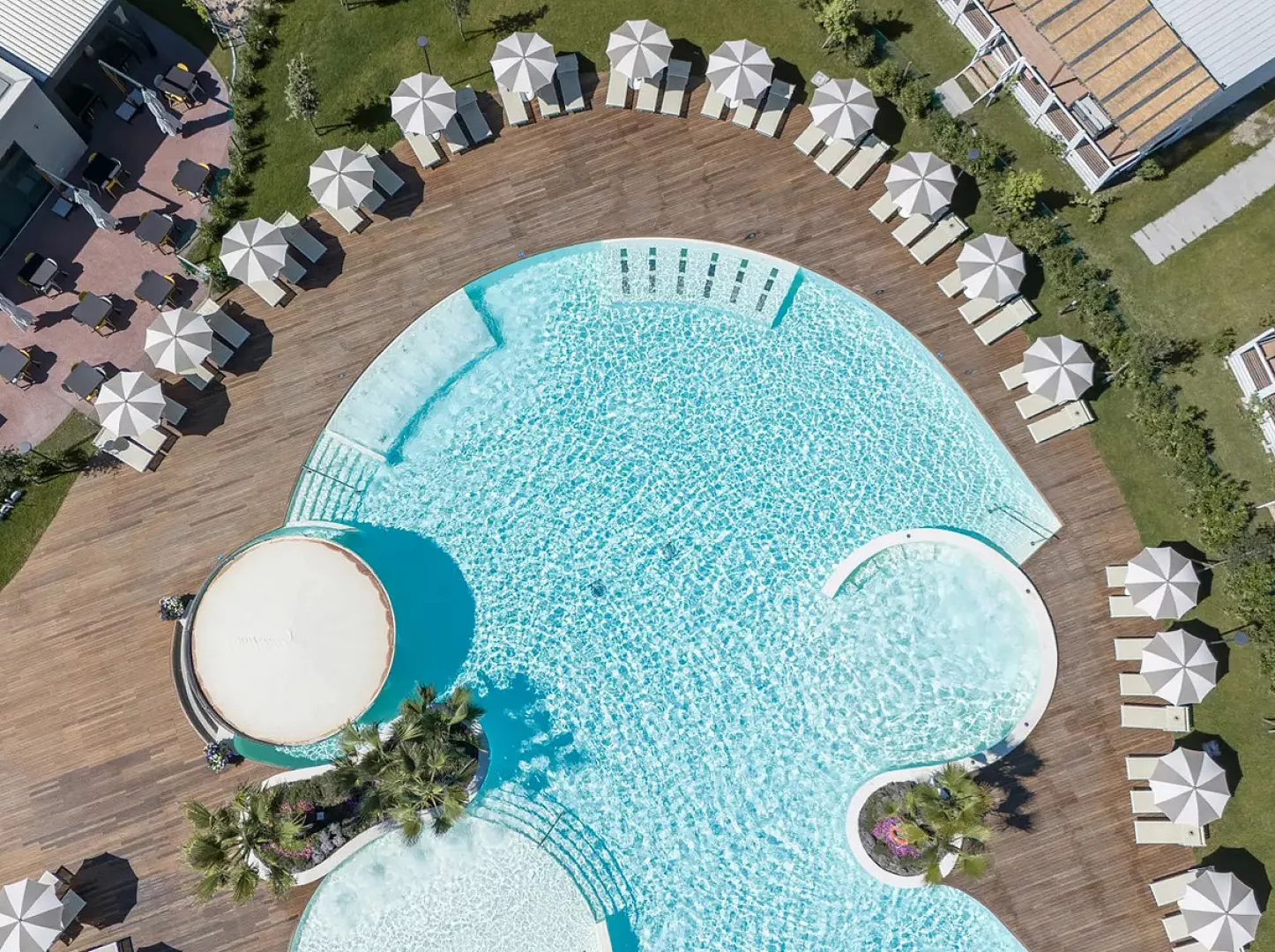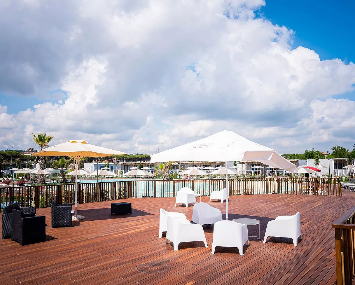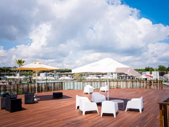bazén s hydromasážnymi tryskami, detský bazén so šmykľavkami, slnečníky* a ležadlá* (všetko približne od konca mája do polovice septembra), požičovňa bicyklov*, priestor na údržbu a umývanie bicyklov, zmluvná pláž*: plážový volejbal, plážový tenis, stolný tenis * služby za príplatok