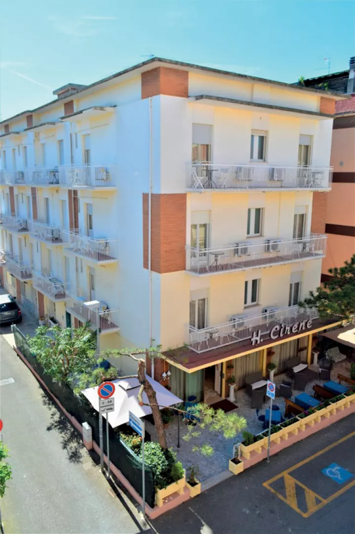 Hotel Cirene sa nachádza v oblasti Rimini - Marina Centro, len 290 m od piesočnatej pláže s pozvoľným vstupom do mora. Centrum Rimini je vzdialené 900 m, čo poskytuje jednoduchý prístup k miestnym atrakciám a zábave.
