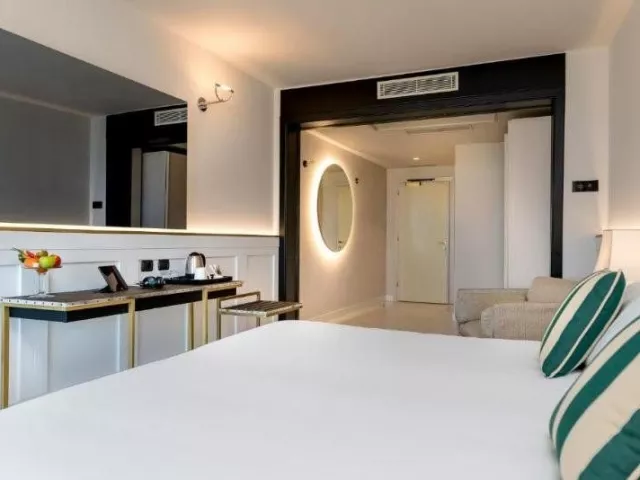 Hotel ponúka komfortné izby typu Comfort s balkónom a výhľadom na more, vybavené Wi-Fi, TV, klimatizáciou, trezorom, fénom, telefónom, minibarmi a rýchlovarnou kanvicou. Väčšie izby typu Deluxe disponujú priestrannejším balkónom a ďalším vybavením ako župan.