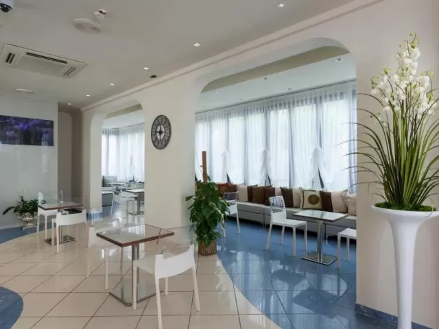 vstupná hala s recepciou a posedením • bar • reštaurácia • slnečná terasa • výťah • wifi • plážový servis v cene (1 slnečník a 2 ležadlá na izbu)