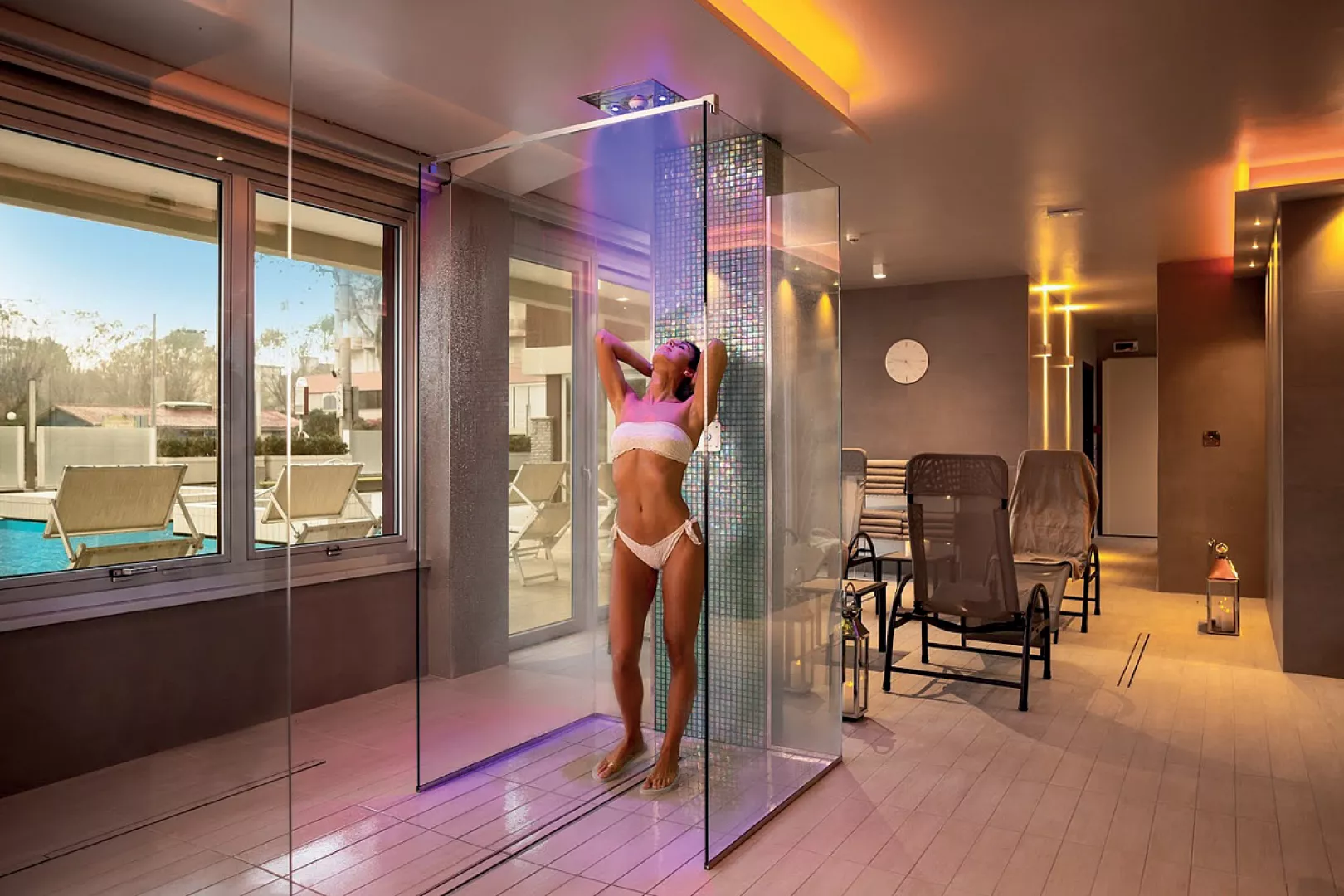 vonkajší bazén s morskou vodou, detský bazén, vírivka, wellness centrum* (od 16 rokov; fínska sauna, turecký kúpel, vírivka, zážitkové sprchy, masážne ležadlá, relax zóna, k dispozícií bylinkové čaje, sušené ovocie a snack), masáže* a ďalšie terapie* na požiadanie * služby za príplatok