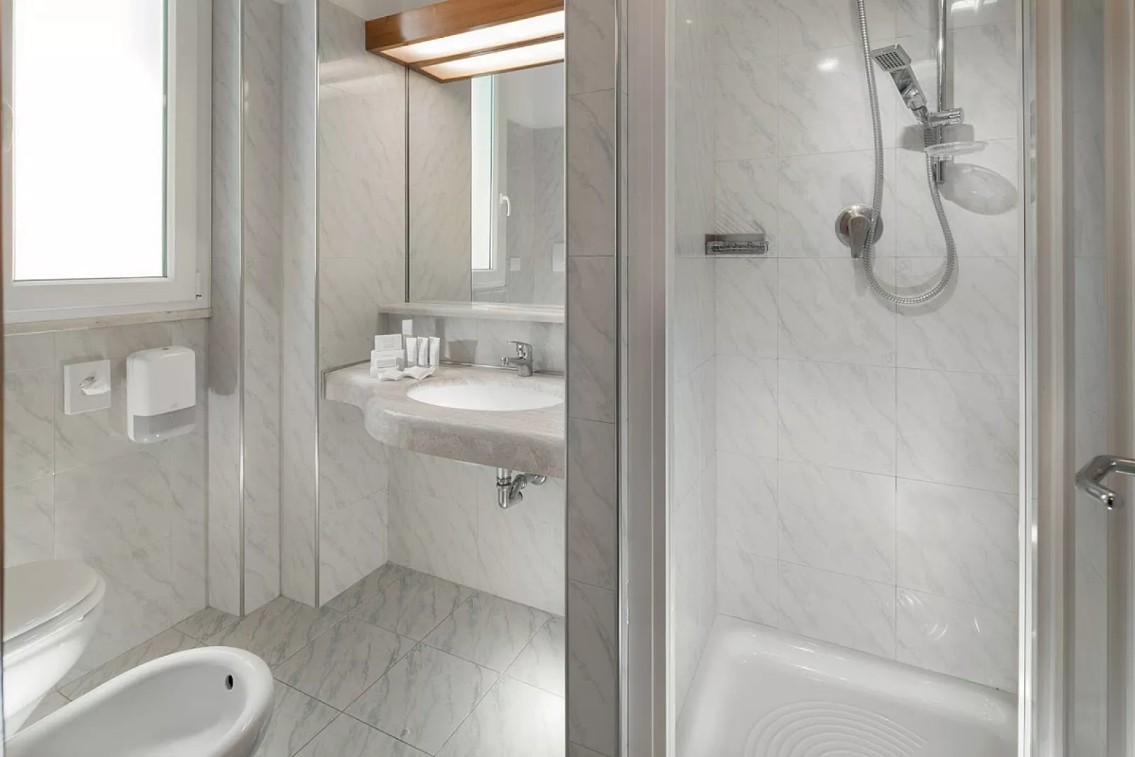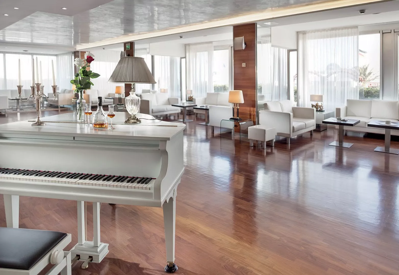 recepcia / lobby / bar, bar pri bazéne, wi-fi pripojenie na internet, reštaurácia vyhradená pre hotelových hostí, výťah, posilňovňa, slnečná terasa, vyhradené parkovisko (20 m od hotela, počet miest obmedzený, nemožno rezervovať vopred), garážové státie* (nutné rezervovať vopred) * služby za príplatok
