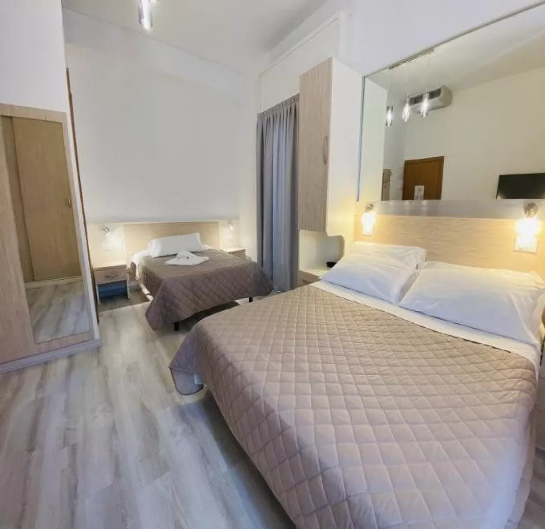 Hotel sa nachádza priamo pri pláži v centre Rimini, len 2 km od letiska. Viale Regina Margherita, Rivazzurra, Rimini.