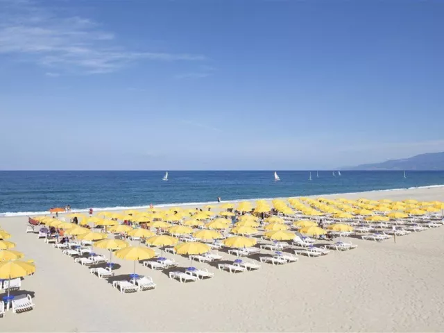 Hotelová piesočnatá pláž, ktorá sa skladá z jemného piesku a štrku, je len krátkych 300-700 metrov od rezortu, oddelená miestnymi píniovými a eukaliptovými lesmi. Plážový servis, vrátane 1 slnečníka a 2 ležadiel, je k dispozícii zdarma od 3. rady.