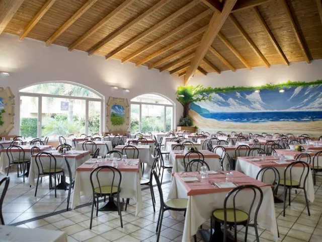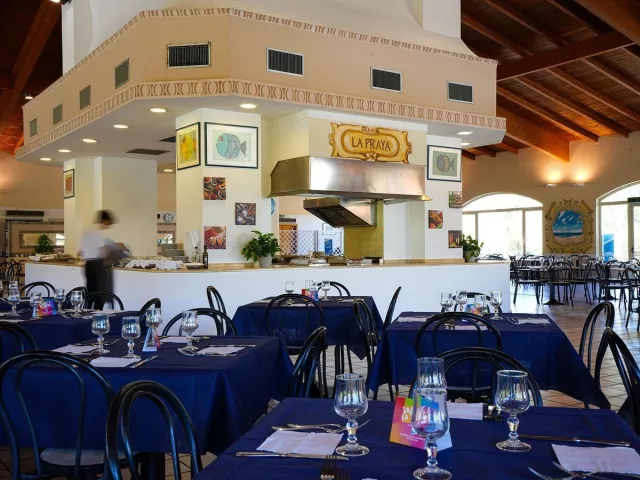 V reštaurácii a plážovom bare je potrebné rezervovať si konzumáciu vybraných pokrmov a nápojov, ktoré sú za príplatok. Stravovanie je zabezpečené formou bufetu počas celého dňa. All inclusive program zahŕňa raňajky, obedy a večere, pričom vybrané nápoje (voda, vybrané sladké nápoje, víno alebo pivo) sú zahrnuté v cene počas hlavných jedál, ako aj neobmedzené množstvo vybraných nealkoholických a alkoholických nápojov počas dňa (10:00–23:00).