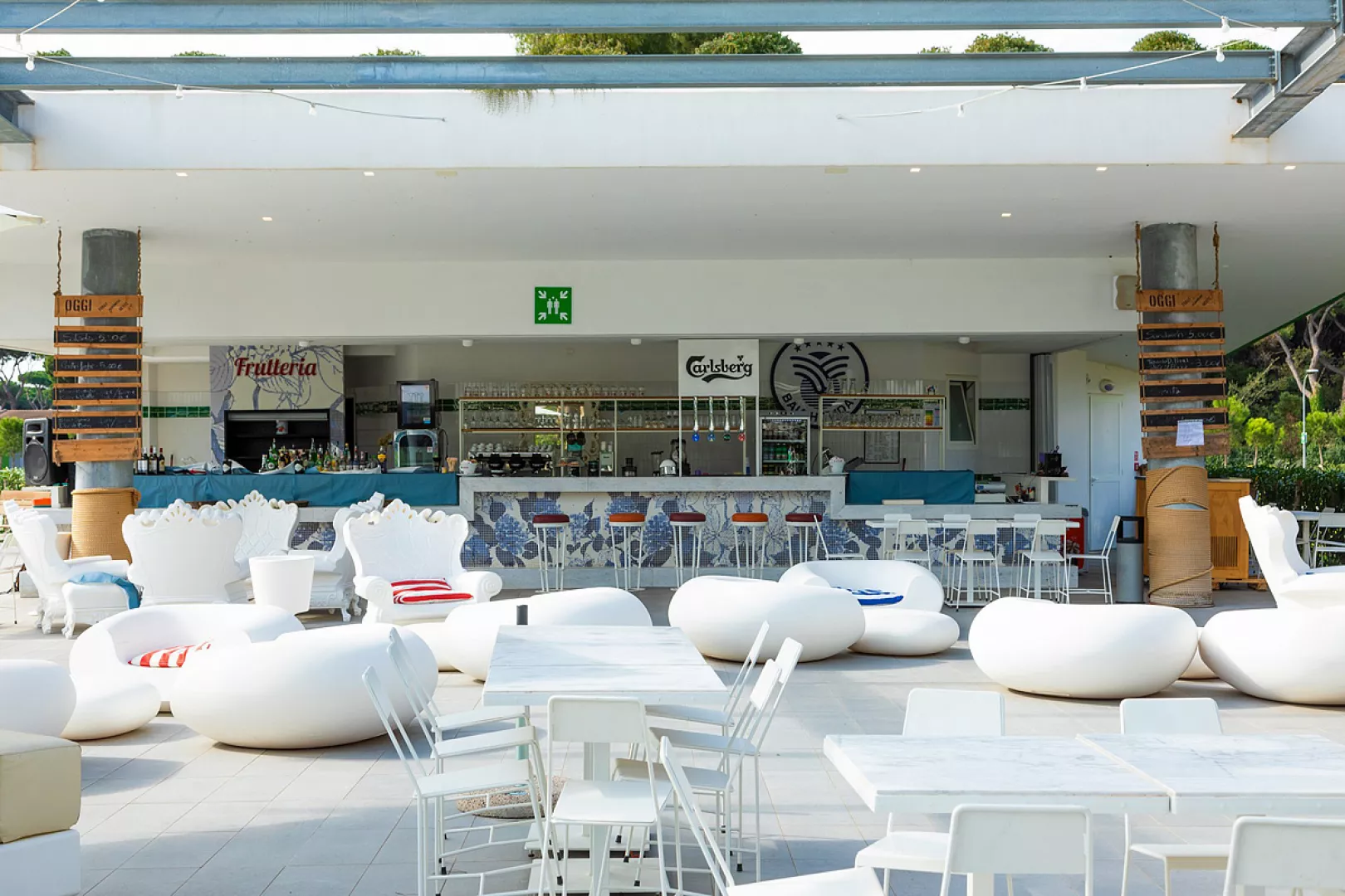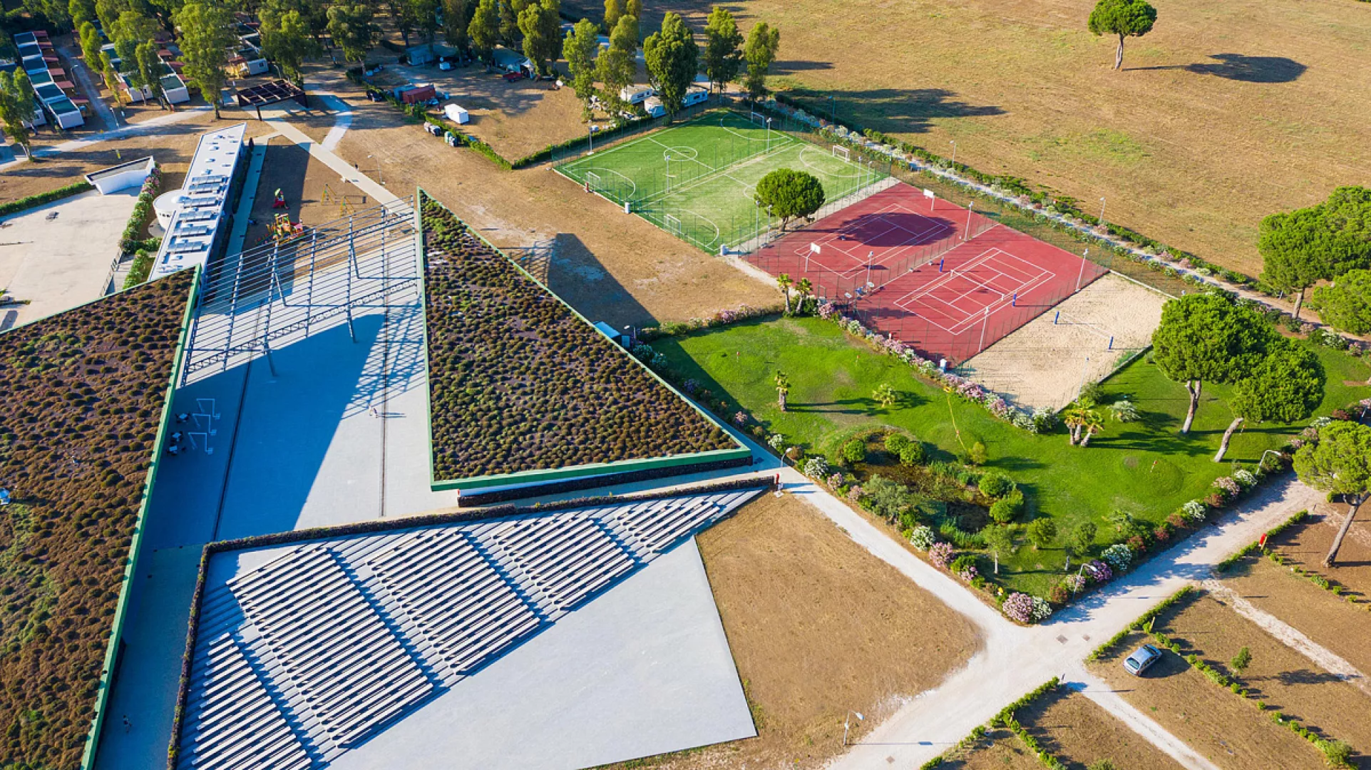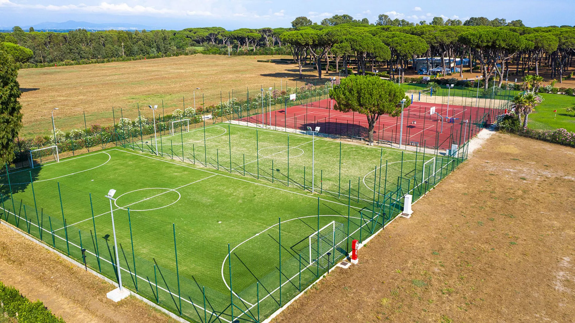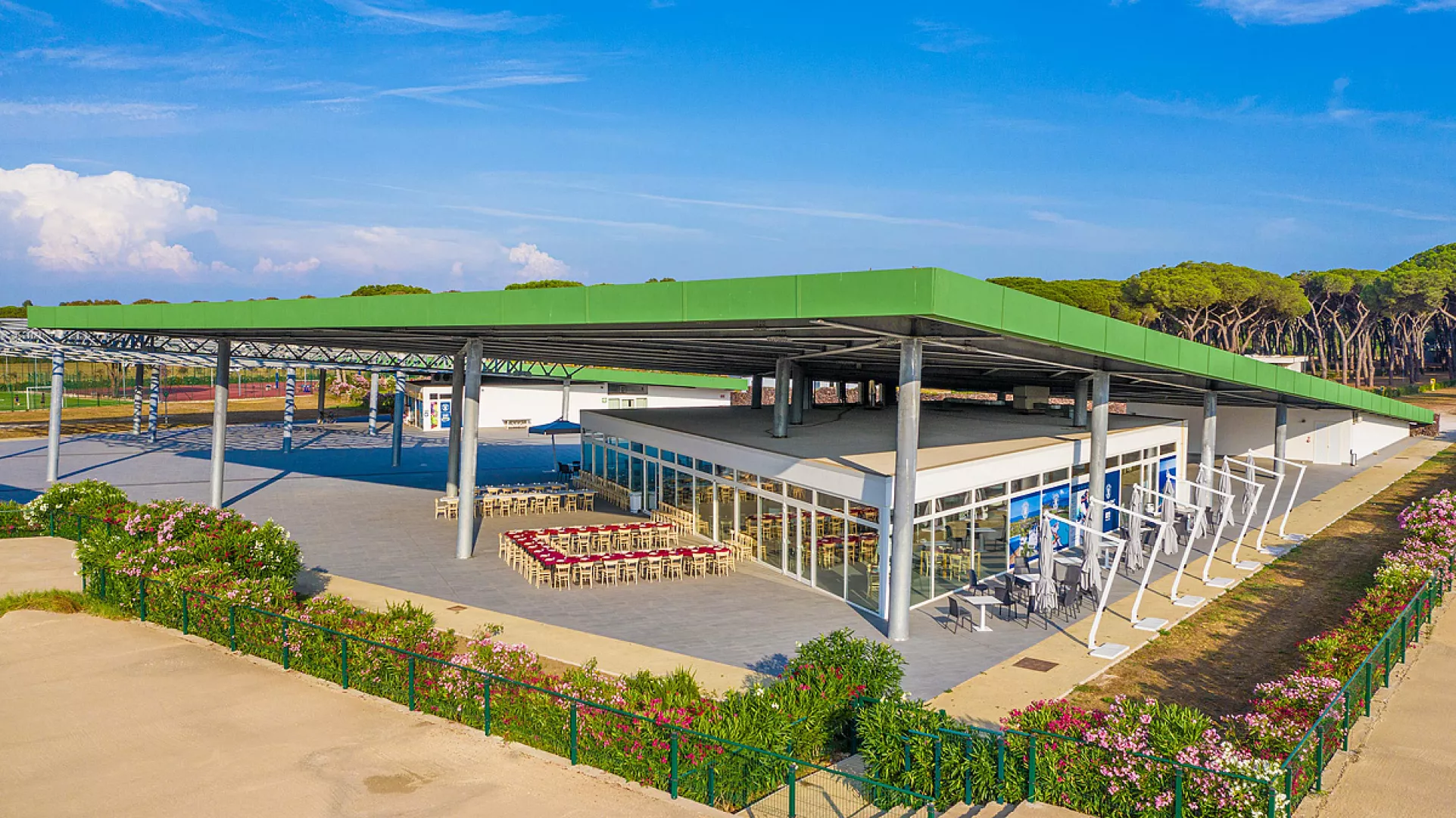 vodný park Centrale s bazénmi pre deti aj dospelých a vodnými atrakciami (približne 23.05. – 15.09.), slnečníky* a ležadlá*, vodný park Pineta (približne 23.05. – 15.09., otvorený iba v prípade vysokej obsadenosti kempu), stolný tenis, minifutbalové ihrisko*, tenisový kurt*, multifunkčné ihrisko, plážový volejbal, minigolf* * služby za príplatok