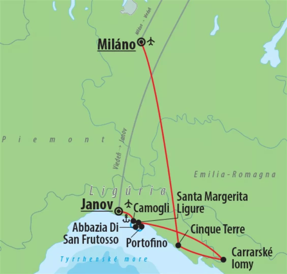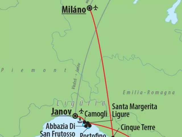 Doprava je realizovaná letecky z Viedne alebo Bratislavy do Milána (Bergamo). Počas piatich dní zažijete mestá a dedinky v Ligúrii na nasledujúcich miestach: