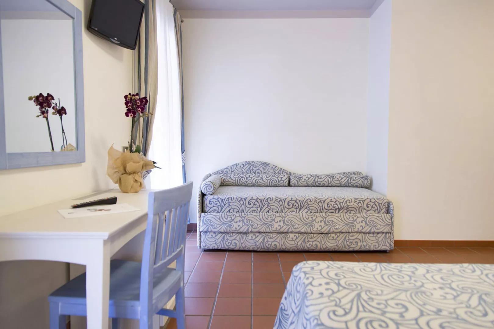 Dvojlôžkové izby sú vybavené klimatizáciou, TV/sat, telefónom, kúpeľňou s WC a sušičom vlasov. K dispozícii je minibar (s doplnením za poplatok), Wi-Fi pripojenie zdarma, trezor (za poplatok) a balkón alebo terasa. Hotel ponúka aj ďalšie typy izieb vrátane trojlôžkových a štvorlôžkových s moderným vybavením a rôznymi výhľadmi na more.