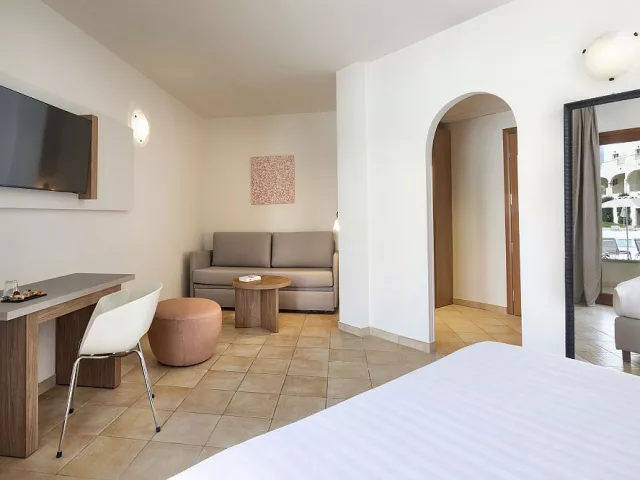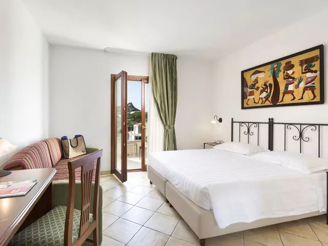 Dvojlôžková izba je vybavená klimatizáciou, TV/sat, telefónom, kúpeľňou/WC (so sušičom vlasov), minibarom (za poplatok), trezorom (za poplatok) a balkónom alebo terasou. K dispozícii sú tiež trojlôžkové a štvorlôžkové izby, ako aj izby s bočným výhľadom na more.