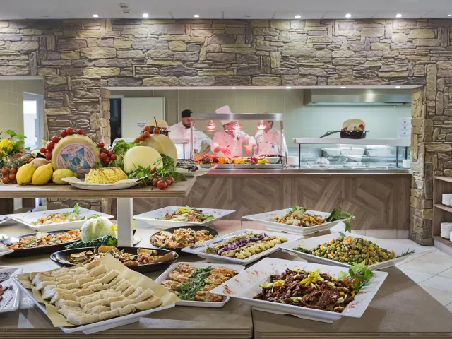 Stravovanie formou polpenzie plus zahŕňa raňajky a večeru formou bufetu, pričom počas jedla sú k dispozícii karafa vody a stolové víno.