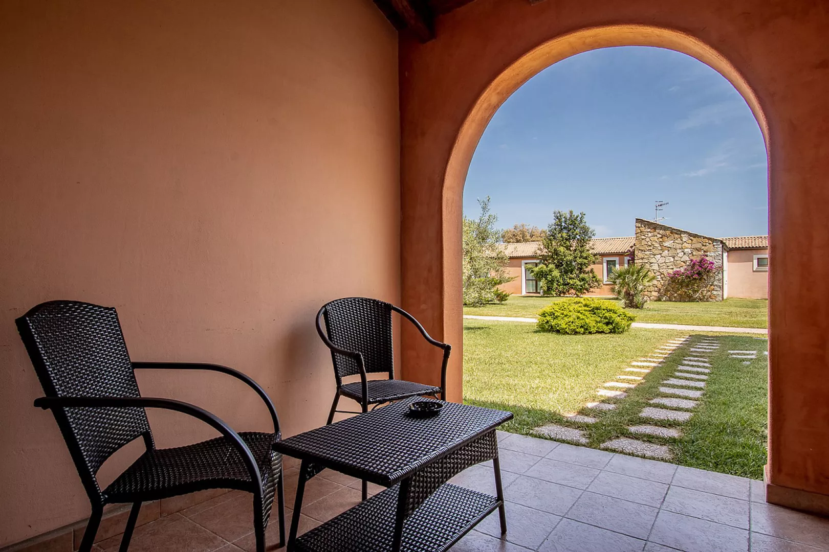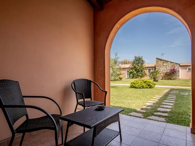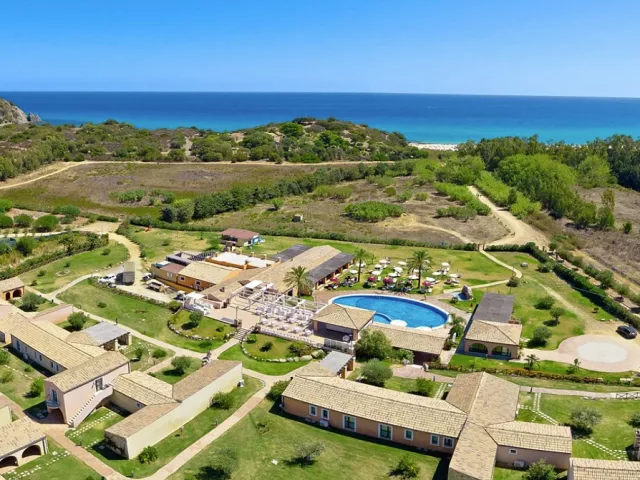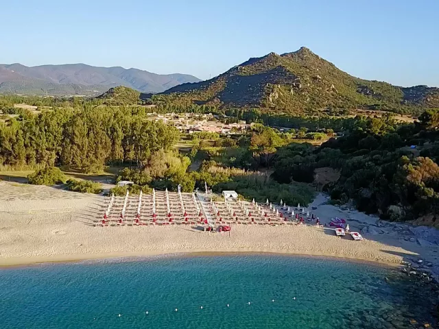 hotelový komplex v typickom sardskom štýle v juhovýchodnej časti Sardínie, takmer na polovičnej ceste medzi mestami Costa Rei a Villasimius; k dispozícii celkom 103 izieb rozmiestnených v radových jedno či dvojpodlažných vilkách v rozľahlej hotelovej záhrade vzdialených 300 až 450 m