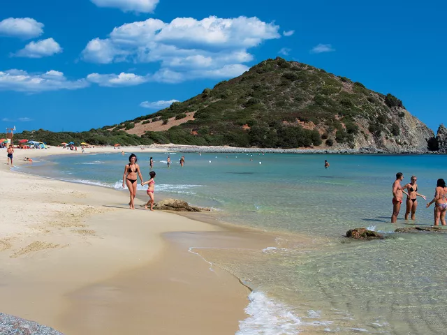 Castiadas, Costa Rei – 6 km, Villasimius – 12 km, pláž / 2 km dlhá piesočná Cala Sinzias s pozvoľným vstupom do mora, z jednej strany ohraničená skaliskami - 240 m, letisko Cagliari 61 km, prístav Olbia 265 km