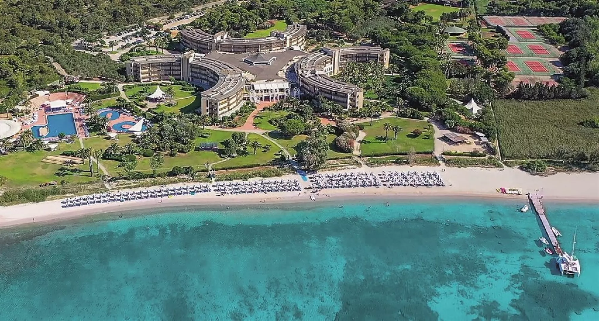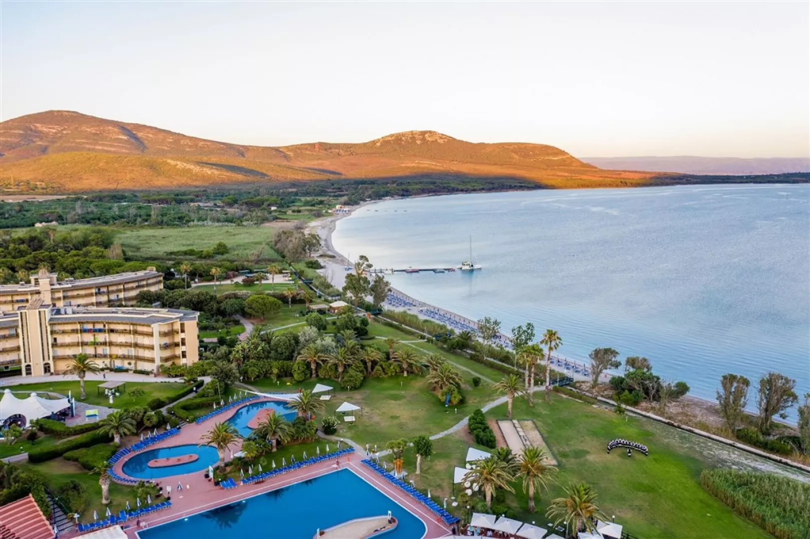 Areál pozostáva z centrálnej budovy so službami a troch ubytovacích blokov. K dispozícii je vstupná hala s recepciou, hlavná reštaurácia, all inclusive bar, bazén s dvoma detskými bazénmi a slnečníky s ležadlami pri bazénoch a na pláži. V areáli sa nachádzajú aj tenisové kurty, stolný tenis, plážový volejbal, zóna pre jogu, boccia, posilňovňa, kaderníctvo, wifi, detský miniklub a ihrisko, ako aj hotelové animácie.