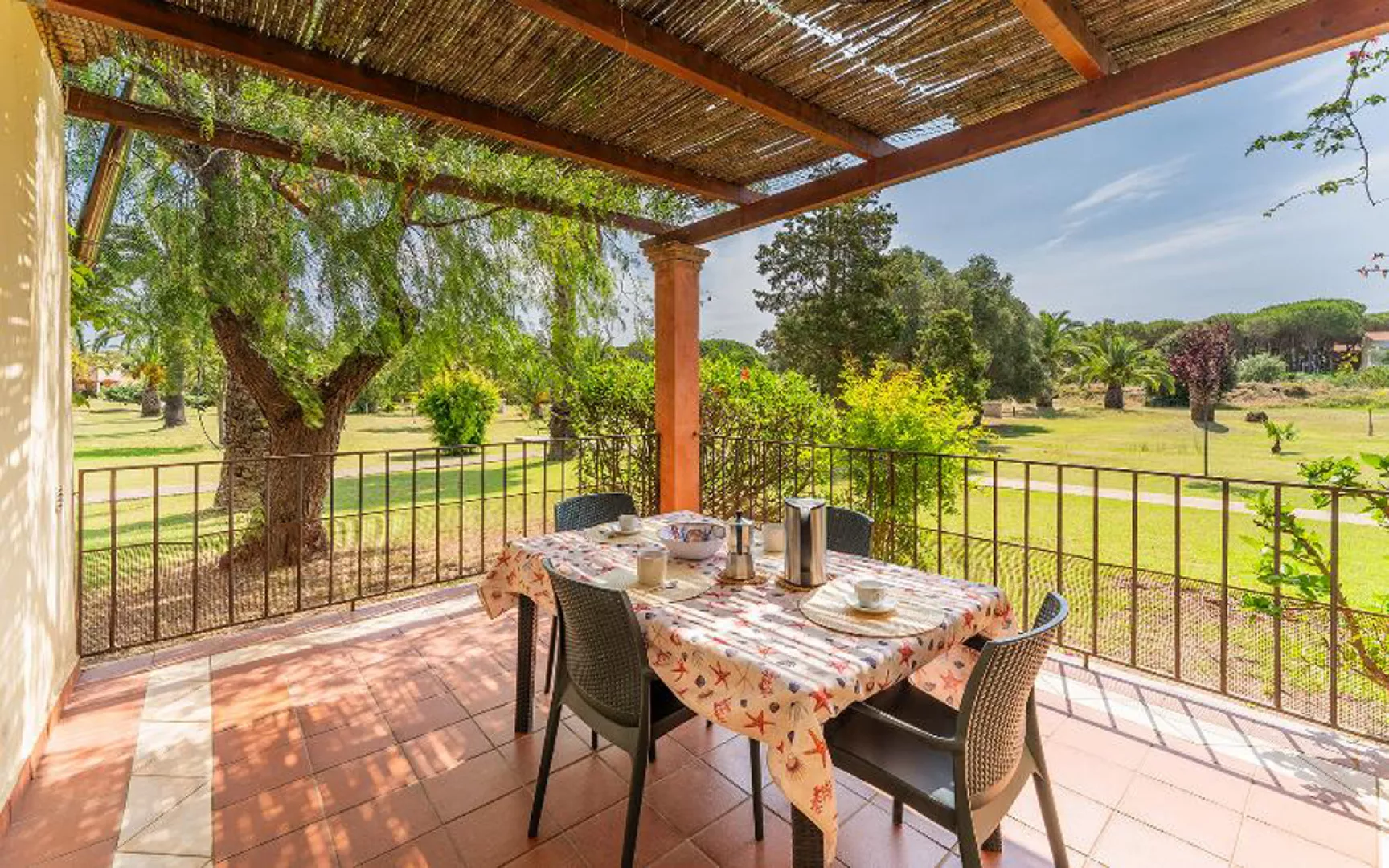 rezidenčný komplex s bazénom na pokojnom mieste v rozľahlej záhrade v južnej časti ostrova; staroveké mesto Nora sa nachádza 5,2 km od rezidencie
