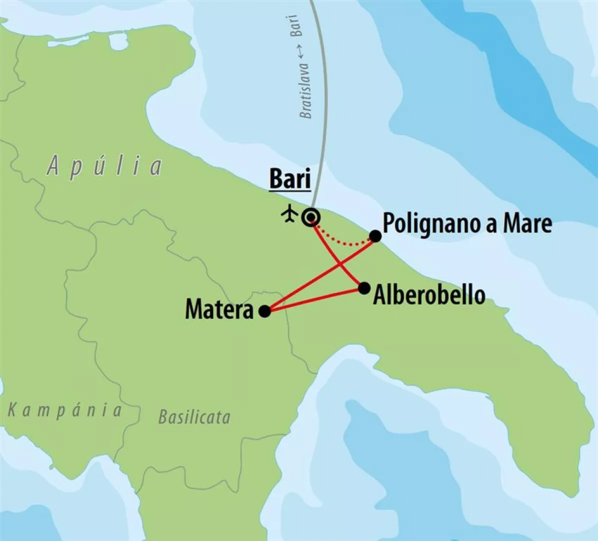 Letecká doprava z Bratislavy do Bari.