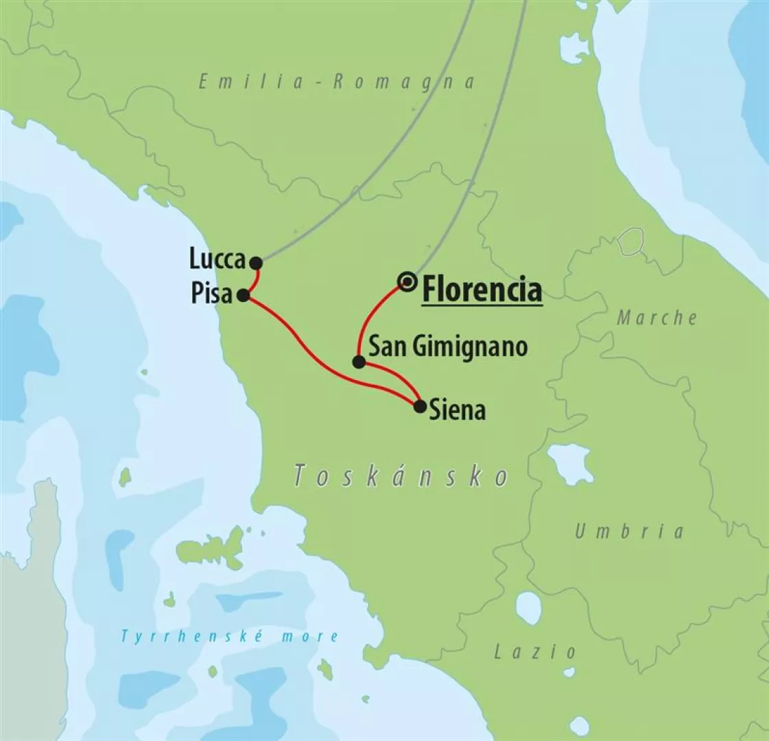 Ochutnajte pravé Toskánsko – podoprite šikmú vežu v Pise, vychutnajte si pravú toskánsku atmosféru v Siene, navštívte vinárske mestečko San Gimignano a zájazd zavŕšte v historickej Florencii.