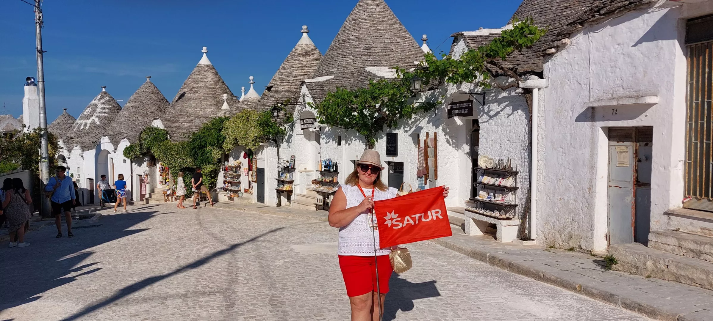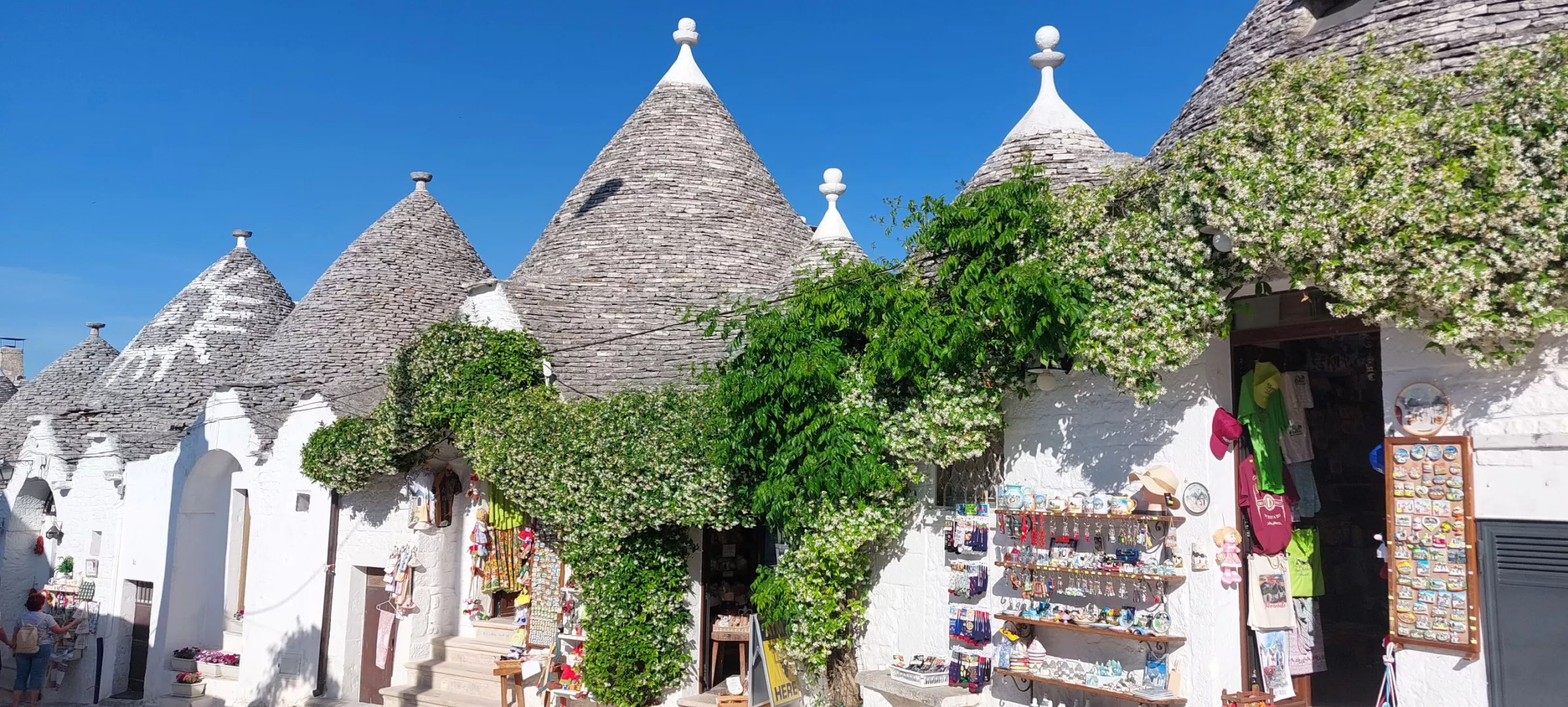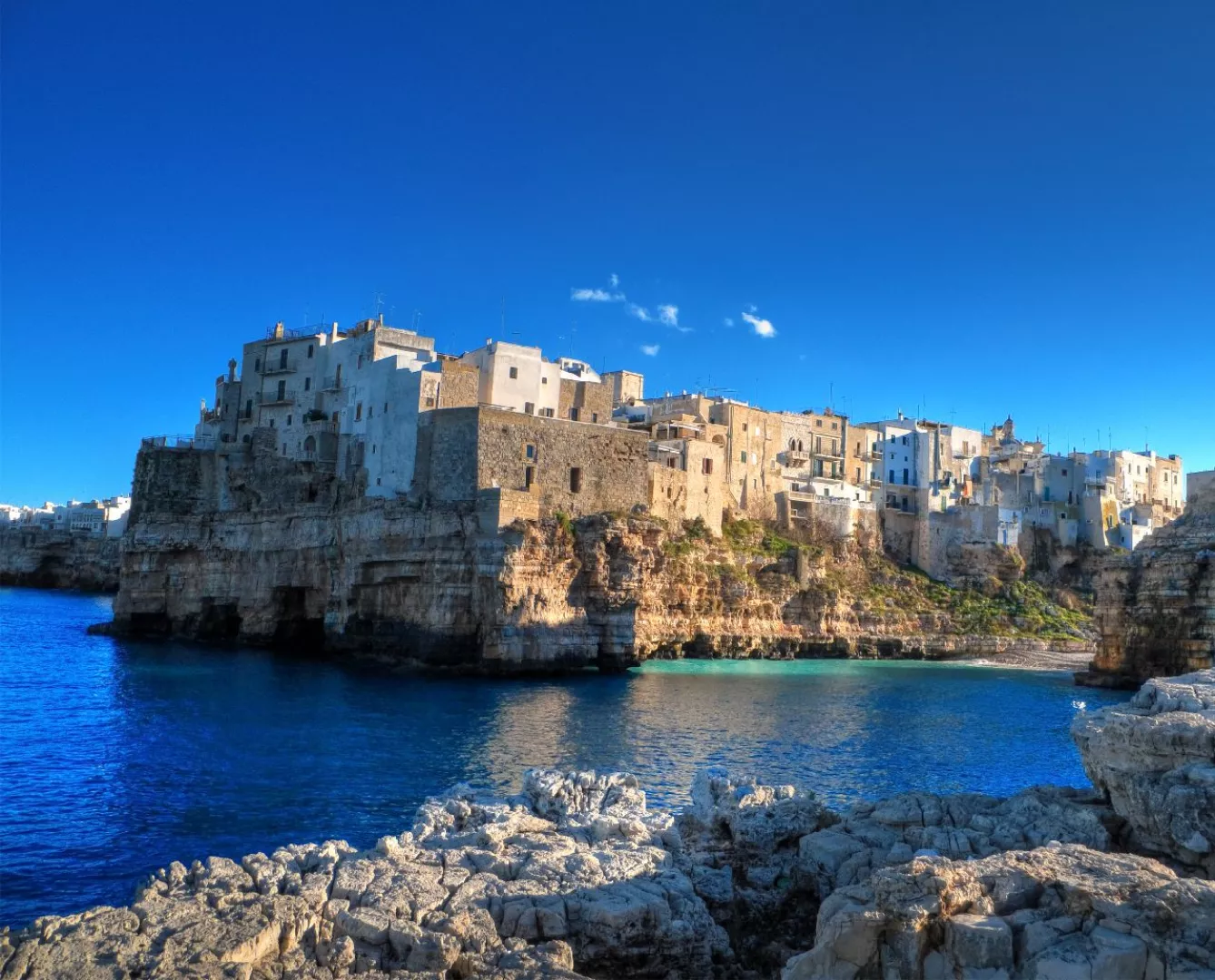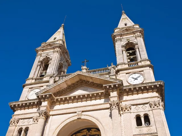 MARTINA FRANCA - LOCCOROTONDO - POLIGNANO A MARE Vydáme sa do šarmantného mestečka Martina Franca s krátkou prehliadkou. Prezrieme si námestie Piazza Roma s Palácom Ducale, taktiež námestie Piazza Plebiscito s jedinečnou Bazilikou di San Martino. Pokračujeme do Loccorotonda , známeho ikonickými bielymi domčekmi a olivovými hájmi. Historické centrum nás očarí na prvý pohľad: úzke, kľukaté uličky sú lemované snehobielymi domami s balkónmi preplnenými muškátmi a inými kvetmi. Typické sú aj tzv. „cummerse“ – domy so šikmými strechami pokrytými kamennými platňami, ktoré dodávajú mestečku jedinečný charakter. Čaká nás ešte pobrežné mestečko Polignano a Mare . Nábrežná promenáda so sochou slávneho rodáka, speváka Domenica Modugna, nás dovedie až do historického centra s malebnými stredovekými uličkami.