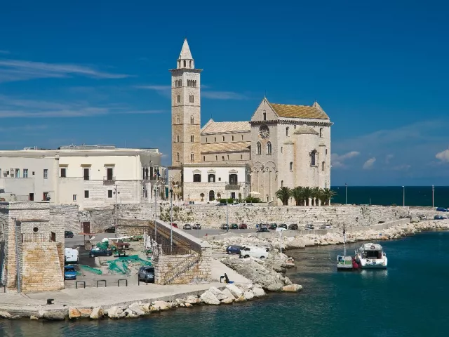 CASTEL DEL MONTE - TRANI - BRATISLAVA Dnes navštívime hrad Castel del Monte , ktorý si dal postaviť sväto–rímsky cisár Fridrich II. v 13. storočí. Unikátna pevnosť je opradená mnohými legendami a tajomstvami. Cestou z hradu sa vydáme do malebného starého mestečka na brehu mora, do Trani . Pozrieme si jeho stredoveké historické centrum s gotickou katedrálou. Po prehliadke sa presunieme na letisko a odletíme do Bratislavy.