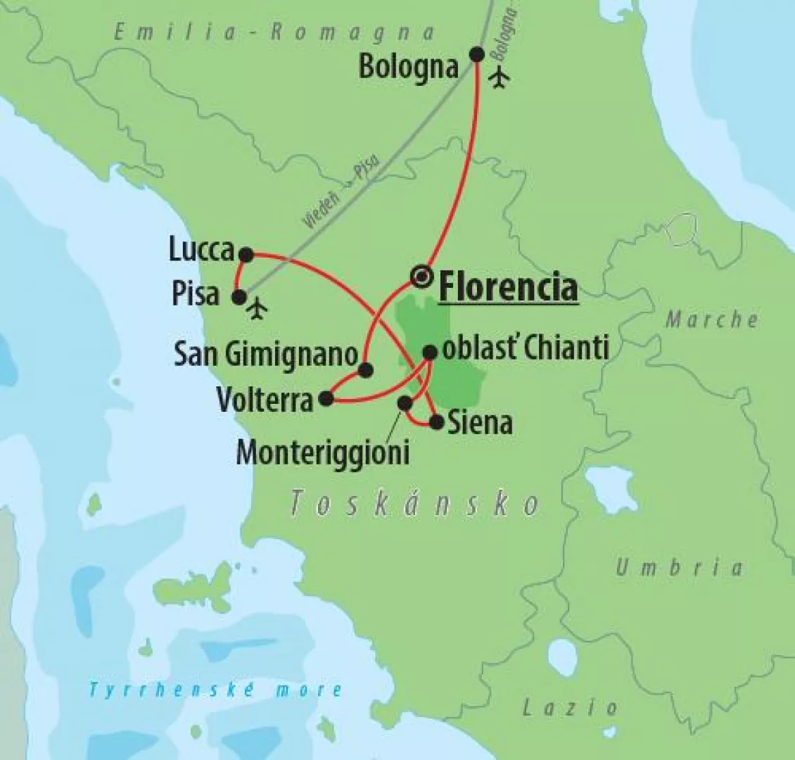 Zažite nezabudnuteľnú cestu Toskánskom. Preskúmajte stredoveké mestá, svetoznáme pamiatky a skryté zákutia tohto najznámejšieho regiónu Talianska, ktorý ponúka romantické a dych berúce scenérie.