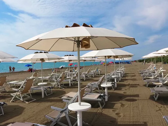 plážový servis (1 slnečník, 1 ležadlo a 1 kresielko / izba v cene, od 29.05. do 27.09., od 3. rady), vonkajšia posilňovňa, úschovňa bicyklov