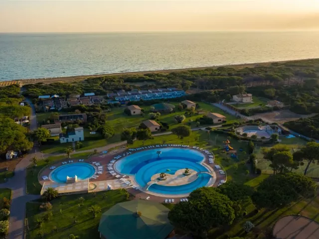 Moderný komplex je umiestnený v rozľahlej záhrade a obklopený píniovým hájom. Nachádza sa približne 150 metrov od piesočnatej pláže, ktorú od komplexu oddeľuje iba píniový les. Plážový servis (1 slnečník a 2 ležadlá) a niektoré vodné športy, ako vodný bicykel a kanoe, sú zahrnuté v cene pobytu pre vybrané typy apartmánov (MONO a BILO Superior).