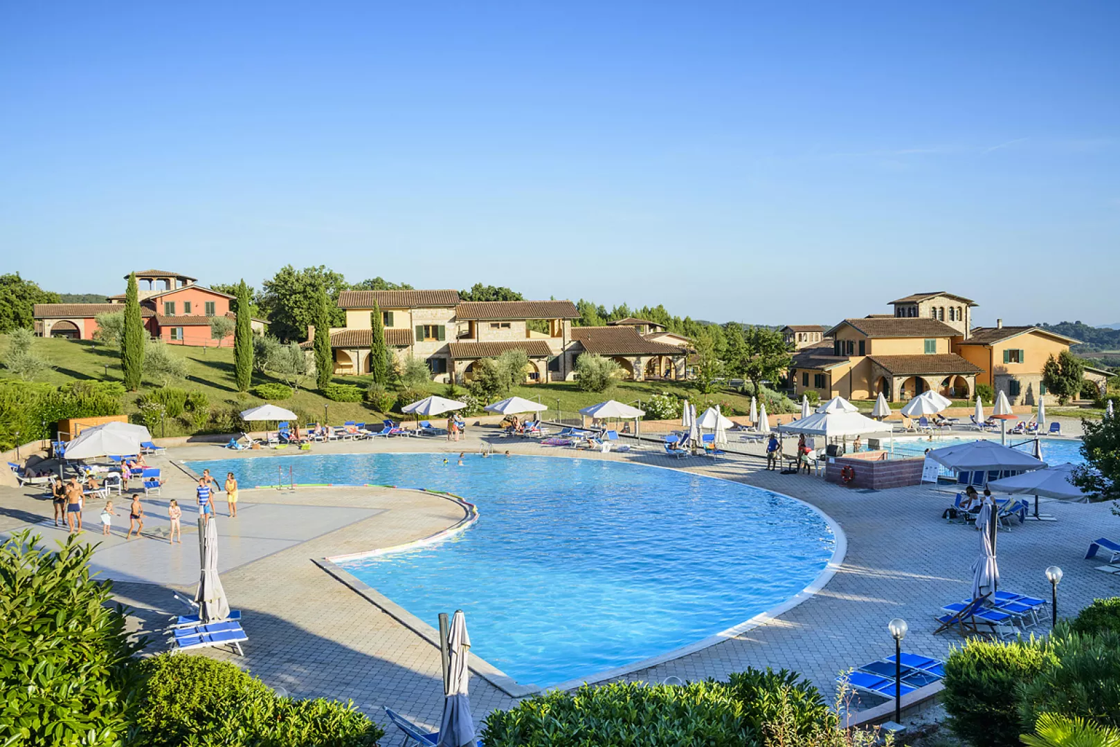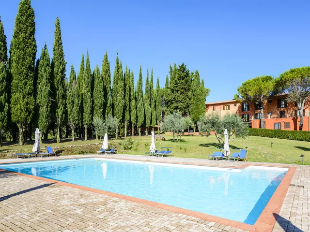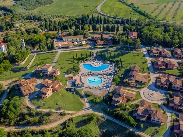 izby a apartmány sú rozmiestnené v udržiavanom parku v niekoľkých objektoch; v centrálnej časti pôvodné kamenné rekonštruované budovy z 18. storočia „Antico Borgo“ a „La Torre“, „Palazzo Vittoria“ s hotelovými izbami a vlastným bazénom v typickom vidieckom štýle v pokojnej časti rezortu; pri hlavných bazénoch sú rozmiestnené „Ville“, elegantné vilky s priestrannými apartmánmi s vonkajším posedením; v secesnej budove „Villa Moris“, uprostred parku so vzrastlými stromami, sa nachádzajú hotelové izby najvyššej kategórie