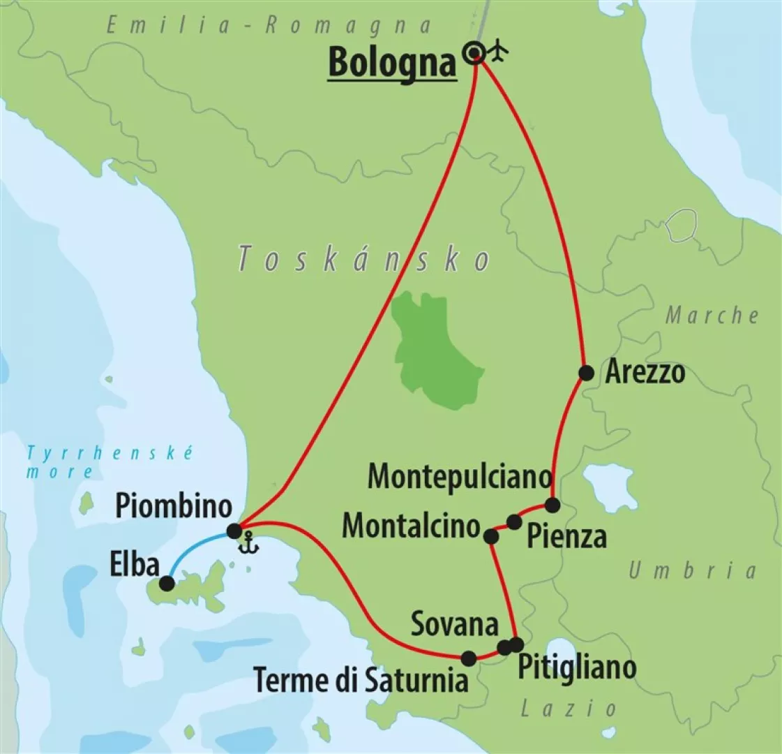 Objavte očarujúce Toskánsko a historický ostrov Elba na nezabudnuteľnom 5-dňovom poznávacom zájazde. Zájazd zahŕňa leteckú dopravu z Viedne do Bologne, 4 noci ubytovania v hoteli s raňajkami a bohatý program plný prehliadok a ochutnávok.