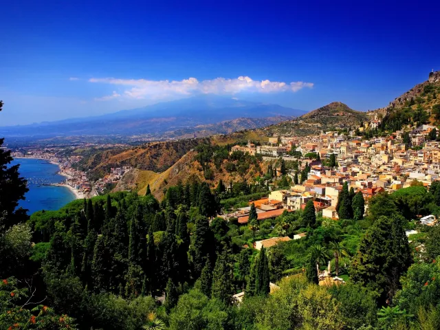 VILLA SAN GIOVANNI - MESSINA - TAORMINA Dnes sa presunieme do mesta Villa San Giovanni , kde sa nalodíme na trajekt na Sicíliu. Na Sicílii si spravíme krátku zastávku v Messine , kde navštívime katedrálu s najväčším orlojom na svete. Pokračovať budeme do Taorminy , jedného z najkrajšie položených miest na Sicílii. Z gréckeho divadla si vychutnáme nádherný pohľad na stále činnú sopku Etnu, ktorú si na nasledujúci deň budeme môcť aj pozrieť celkom zblízka. Po prehliadke odchod na ubytovanie v okolí Taorminy.