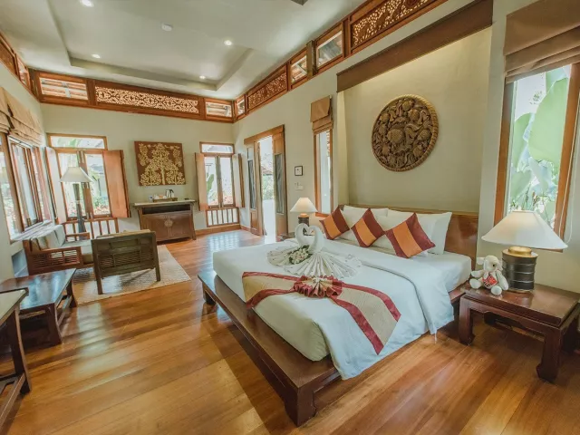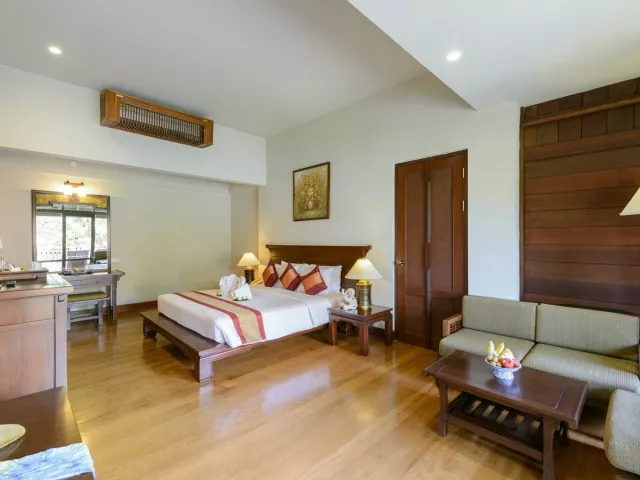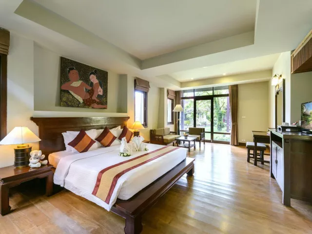 Hotel ponúka dvoulůžkové izby deluxe s rozlohou cca 48 m², vybavené vaňou, WC, sušičom na vlasy, klimatizáciou, TV, telefónom, minibarom a setom na prípravu kávy/čaju. Izby majú terasu alebo balkón a výhľad do záhrady. Bungalovy pre 2 osoby sú s podobným vybavením, avšak s rozlohou cca 50 m² a možnosťou až 2 prísteliek.