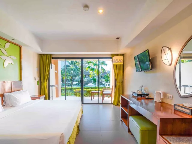 Dvoulůžkový pokoj Leaf dvoulůžkový pokoj s možností přistýlky nízká budova cca 38 m² WC, fén klimatizace TV telefon trezor Wi-Fi minibar/minichladnička set na přípravu kávy/čaje terasa nebo balkon dětská postýlka pro děti do 2 let zdarma (na vyžádání předem) Dvoulůžkový pokoj Cottage dvoulůžkový pokoj s možností přistýlky pokoje nejblíže bazénu cca 40 m² WC, fén klimatizace TV telefon trezor Wi-Fi minibar/minichladnička set na přípravu kávy/čaje terasa nebo balkon výhled na bazén a zahradu dětská postýlka pro děti do 2 let zdarma (na vyžádání předem)