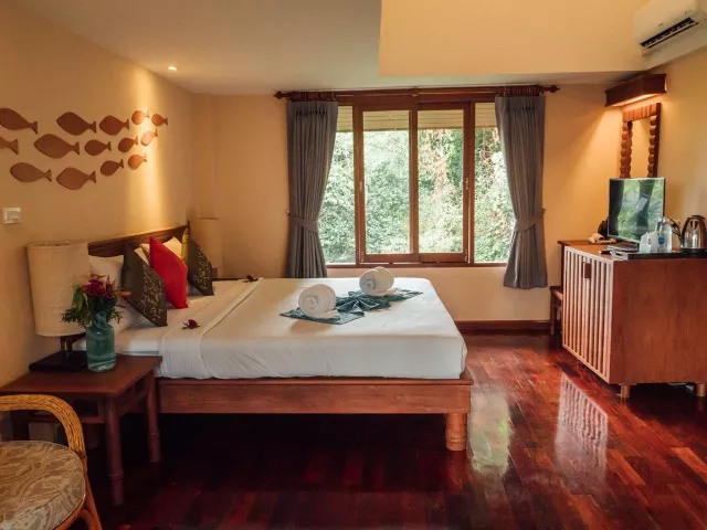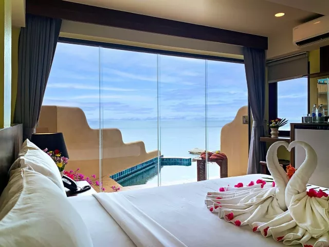 Izby standard sú vybavené manželskou posteľou alebo dvoma samostatnými lôžkami, kúpeľňou s vaňou a WC, klimatizáciou, telefónom, setom na prípravu kávy/čaju, Wi-Fi, trezorom a balkónom. Izby Sea Front majú okrem vyššie uvedeného aj jacuzzi na balkóne a výhľad na more. Vila standard je priestrannejšia a má navyše dve samostatné lôžka.