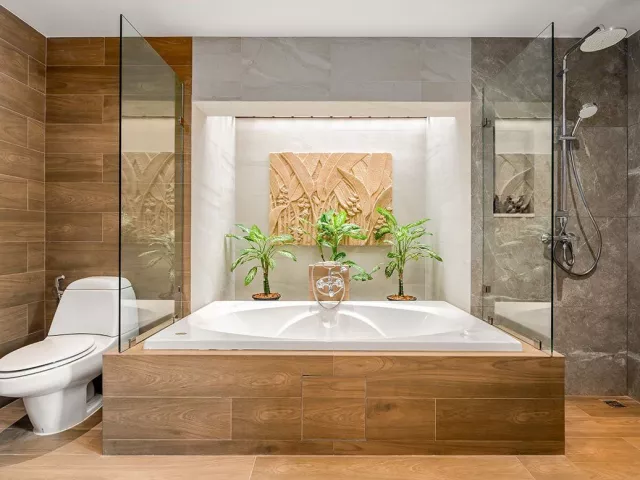 Garden vila má približne 54 m² a je vybavená manželskou posteľou, kúpeľňou so sprchou a vaňou, WC, fénom, županmi, papučami, písacím stolom, TV, telefónom, chladničkou, rýchlovarnou kanvicou a súpravou na prípravu kávy/čaju, ako aj terasou. Možnosť rezervácie s dvoma spálňami alebo inak so zhodným vybavením (približne 108 m²). Beachfront vila má rovnaké vybavenie ako Garden vila, je priestrannejšia (asi 208 m²), nachádza sa v prvej rade pri pláži a disponuje súkromným bazénom. Aj túto vilu je možné rezervovať s dvoma spálňami (približne 280 m²).