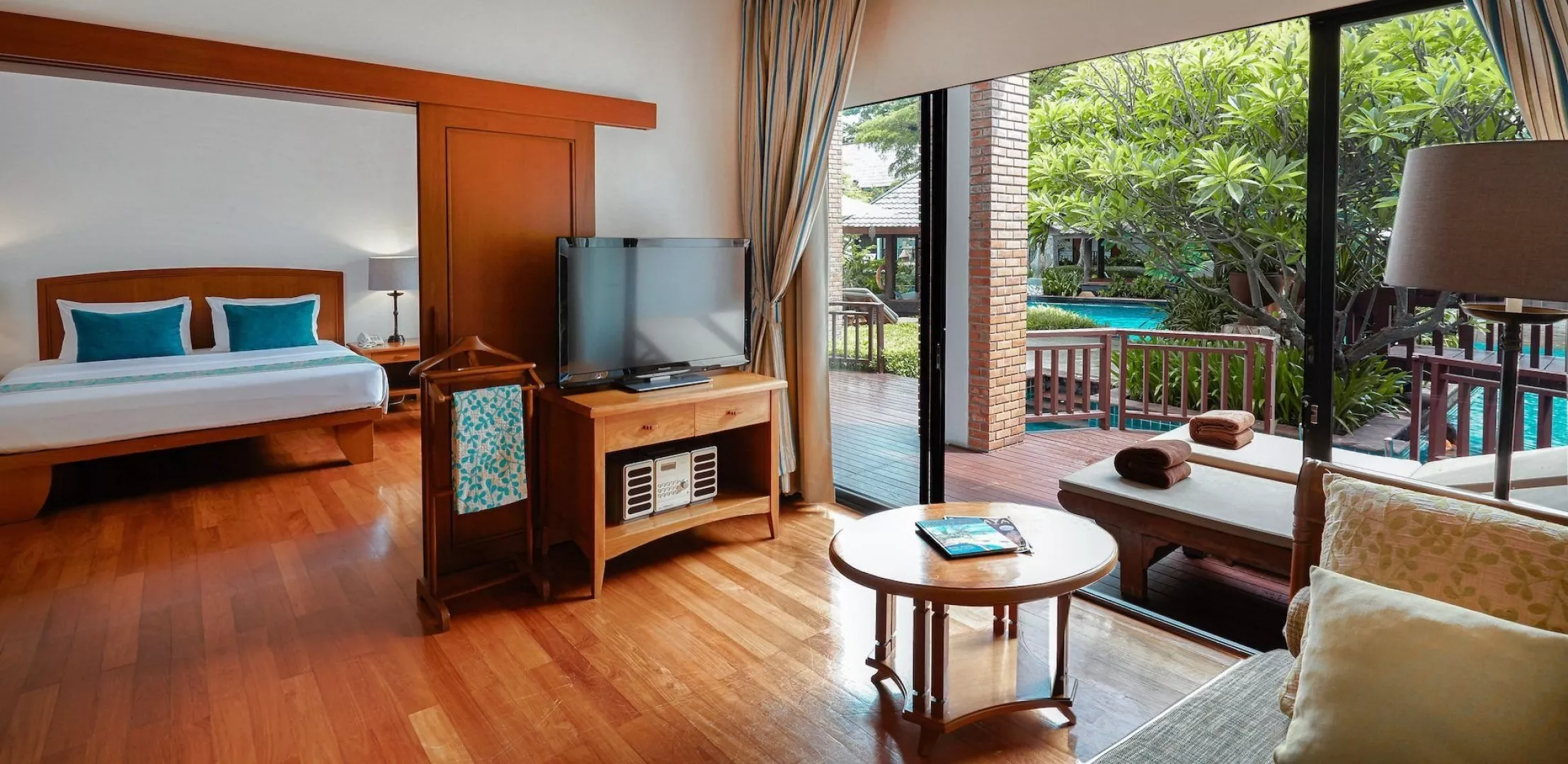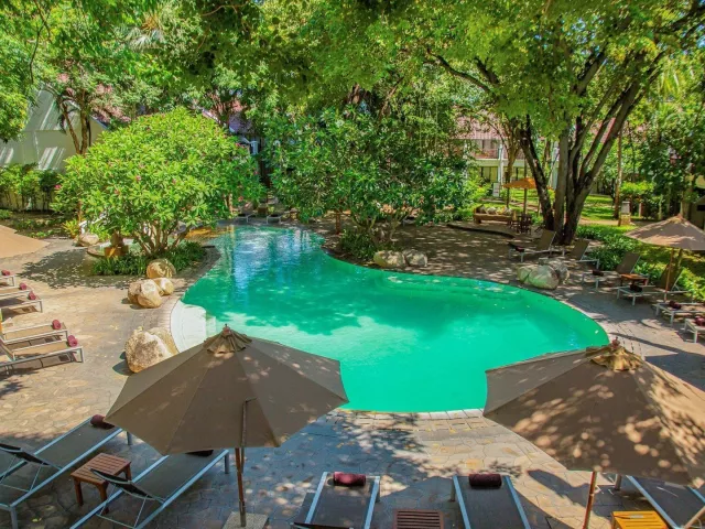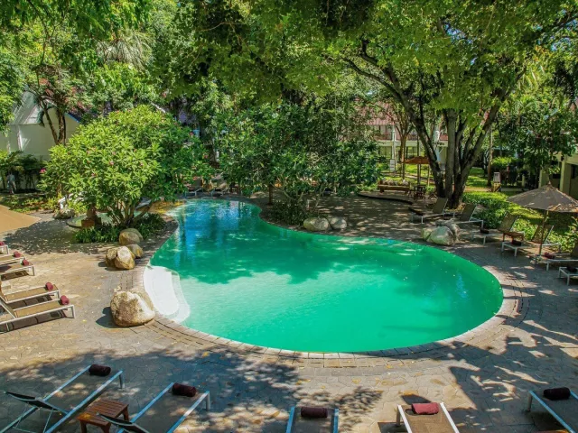 Hotel disponuje niekoľkými reštauračnými zariadeniami a dvoma bazénmi v tropickej záhrade.