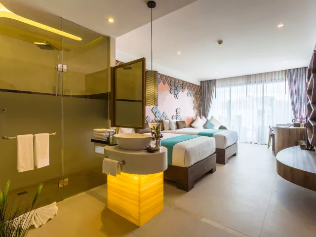 Hotelové stredisko je tvorené 4 budovami a 34 vilami a ponúka vybavenie ako sú 3 výťahy, recepcia otvorená 24 hodín denne, zmenáreň a úschovňa batožiny. K dispozícii sú 2 reštaurácie - PANO a ATMOS, ktoré servírujú medzinárodnú a thajskú kuchyňu, a 2 bary. Zariadenie zahŕňa tropickú záhradu, Wi-Fi pripojenie, bazén s detskou časťou, kde sú ležadlá a slnečníky zadarmo. K dispozícii je aj parkovisko a obchod so suvenírmi. Bezplatne si môžete užiť fitness centrum, stolný tenis, herňu, minigolf a detský kútik, zatiaľ čo za príplatok sú dostupné aktivity ako tai-chi, yoga, pilates a služby wellness centra vrátane fínskej sauny, parnej kabíny a masáží.