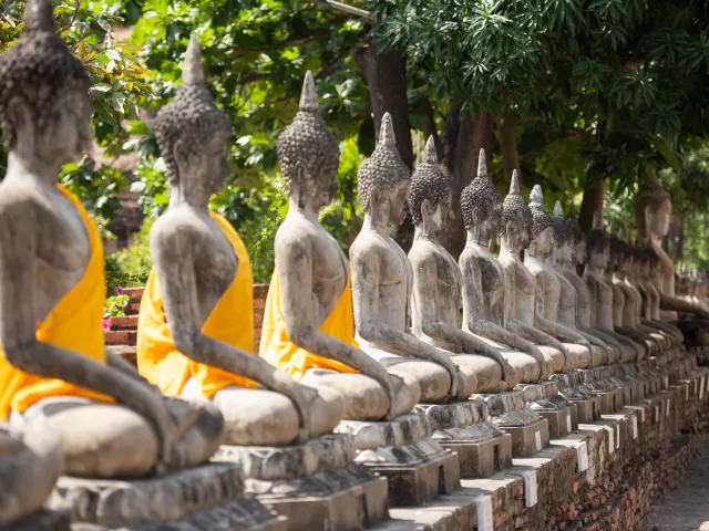 BANGKOK-AYUTTHAYA-BANGKOK Čaká nás niekdajšie hlavné mesto Siamu, historická Ayutthaya (fakultatívne). Prejdeme sa na miestach, kde kedysi bývali králi a kde sa formovala súčasná thajská kultúra. Pred nami sú kráľovské hrobky vo Wat Sri Sanphet , impozantný chrám Wat Chai Watthanaram, ale aj ikonická hlava Budhu zarastená v koreňoch, ktorá sa zaradila medzi symboly Thajska. Poobede sa vraciame do Bangkoku a pokračujeme v gastronomickom dobrodružstve v čínskej štvrti Yaowarat . Thajská kultúra sa tu miesi s čínskou estetikou a vzniká dokonale fotogenická, exotická a chutná mozaika, ktorú pri potulkách Thajskom nemožno vynechať. Bangkok precítime doslova všetkými zmyslami!