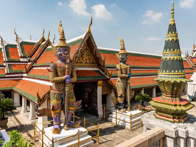 BANGKOK-KRABI-AONANG Dokončujeme Bangkok. Ráno navštívime Wat Pho , známy aj ako Chrám ležiaceho Budhu, domov obrovského ležiaceho Budhu dlhého 46 metrov. Vedľa neho, na brehoch rieky Chao Phraya budeme objavovať Kráľovský palác a jeho dokonalé ukážky tradičnej siamskej architektúry. V komplexe sa nachádza aj Chrám Smaragdového Budhu (Wat Phra Kaew) – najsvätejší svätostánok, kde opatrujú tohto patróna krajiny. Pustíme sa na vodu a loďou budeme objavovať susedstvá na rieke Chao. Čakajú nás domčeky na koloch, malé chrámy a pokojnejší život mimo hlavných ulíc thajskej metropoly. Naša prehliadka vyvrcholí najfotografovanejším pohľadom Bangkoku, malebným bielym chrámom Wat Arun . Podvečer sa presúvame na letisko a prelietame na Krabi. Našim cieľom je pobrežné letovisko Aonang.