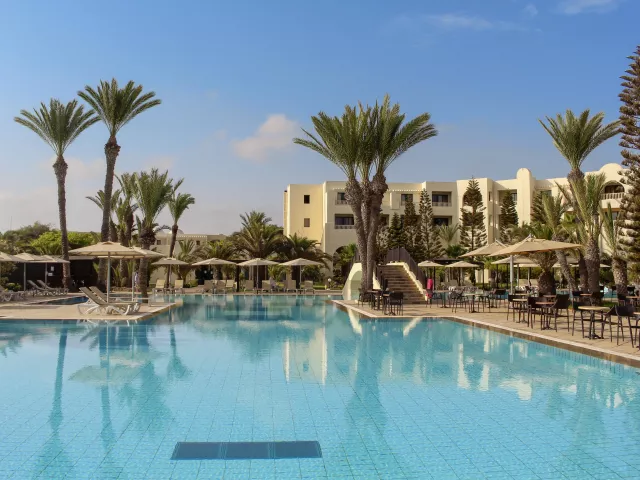 Hotel sa nachádza priamo pri krásnej piesočnatej pláži Sidi Mahrez, v blízkosti centra turistickej zóny, s pohodlným prístupom k dostupným nákupným možnostiam. Djerba je vzdialená 10 km a letisko 27 km.