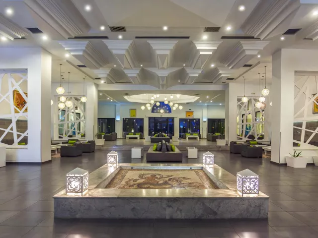 Djerba Aqua Resort sa rozprestiera na 13 hektároch kvitnúcej palmovej záhrady, ktorá ponúka množstvo kúzelných zákutí a spoľahlivé služby. Interiéry hotela sú inšpirované miestnou architektúrou. Pre rodiny s deťmi je tu pripravený bazén s tobogánom, zatiaľ čo rodičia môžu relaxovať a obdivovať kvitnúce ibišteky a buganvílie. Hotel má súkromnú pláž, ktorá je oddelená malými piesočnými dunami, a jeho priateľská atmosféra robí z neho ideálnu voľbu pre rôzne typy návštevníkov.
