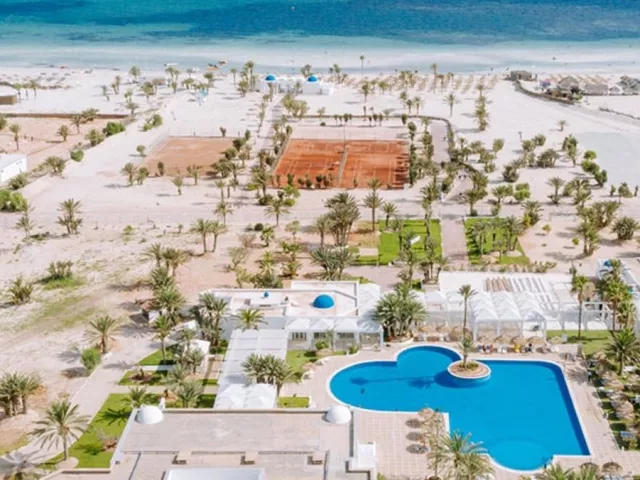 Djerba Golf Resort & Spa je situovaný v krásnej záhrade a palmovom háji s rozlohou 13 hektárov, priamo pri piesočnatej pláži a v blízkosti golfového ihriska. Hotel poskytuje komfort a kompletný servis na dokonalé prežitie dovolenky. Na relaxáciu je k dispozícii SPA centrum. Hotel je vhodný pre klientov všetkých vekových kategórií, milovníkov aktívneho oddychu, ako aj pre rodiny s deťmi.